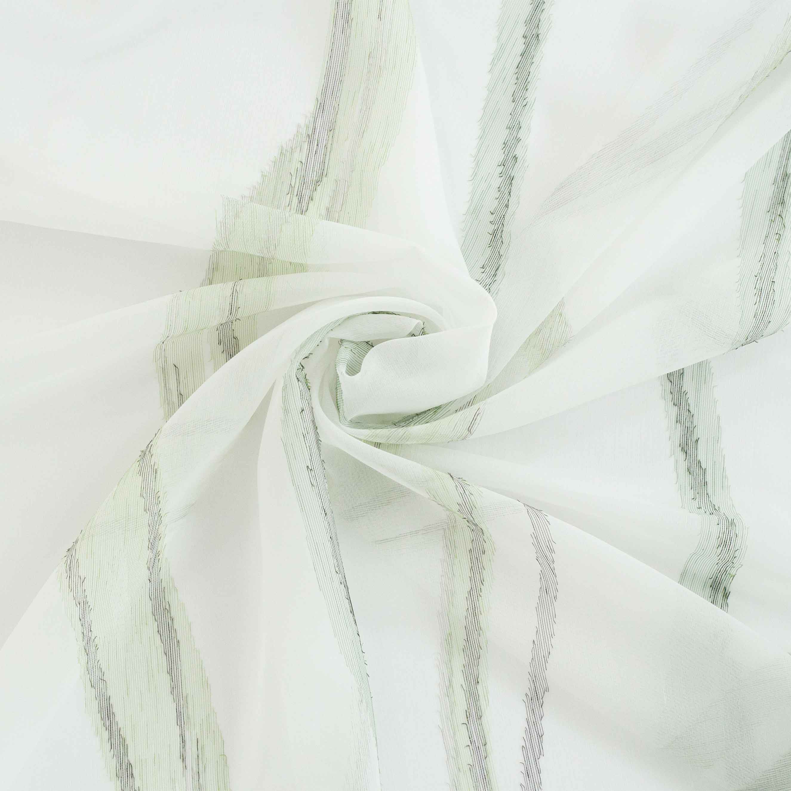 Der transparente Schal Lucrezia mit verdeckten Schlaufen bringt florale Freude in ihr Zuhause. Wellenmuster, die längs über den Schal verlaufen, sind außerdem mit Sherli-Elementen versehen und werten ihren Wohn-, Ess- und Bürobereich auf. Der Schal kommt in drei Farbvarianten daher und lässt sich mit den stabilen verdeckten Schlaufen aus Nylon, welche von hinten fast unsichtbar sind, einfach auf einer Gardinenstange aufhängen.
