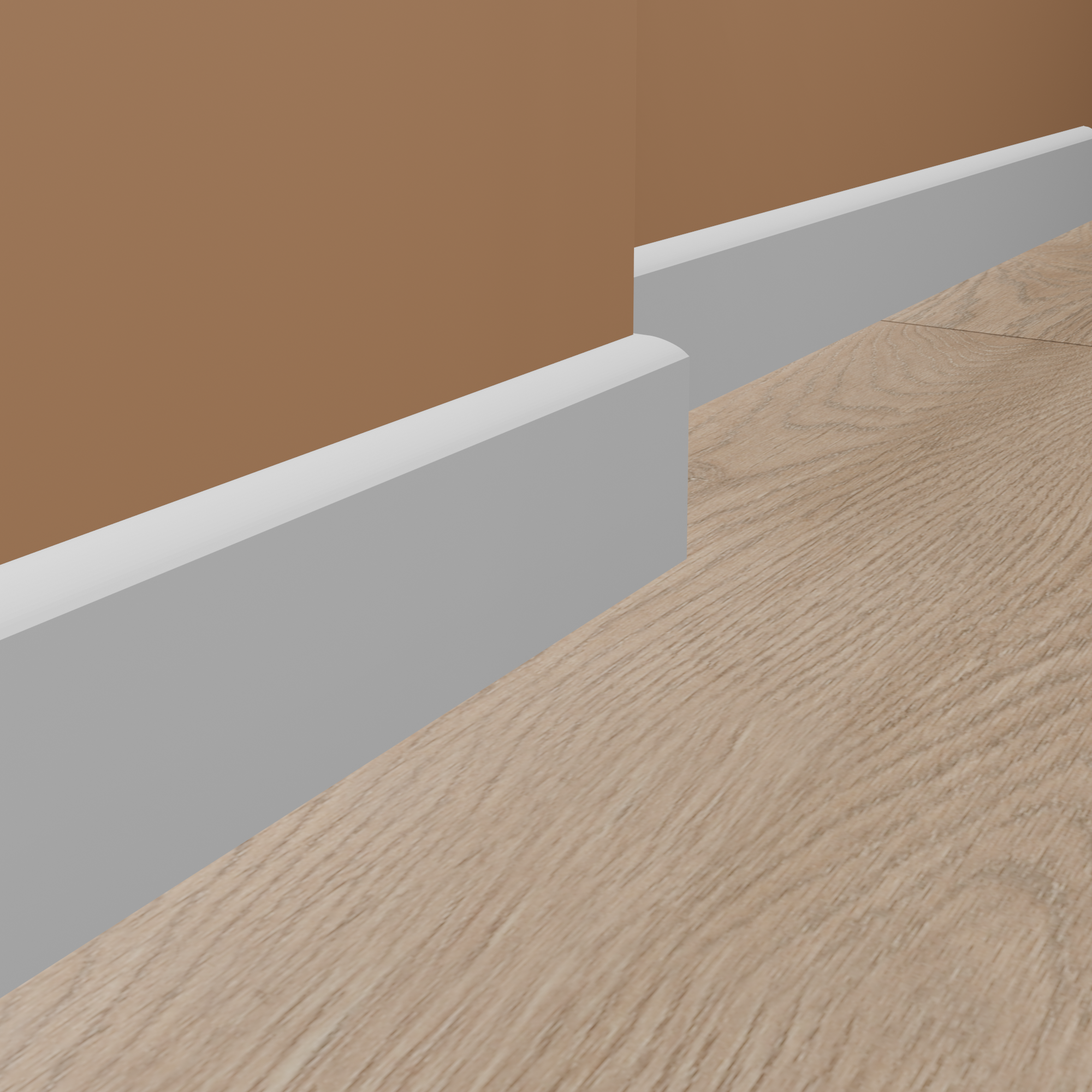 - GRÖSSE: Die Fußleiste mit den Abmessungen 16 x 58 x 2400 mm schafft einen sauberen Übergang zwischen Boden und Wand.