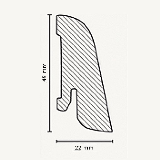 - GRÖSSE: Die Fußleiste mit den Abmessungen 22 x 45 x 2500 mm schafft einen sauberen Übergang zwischen Boden und Wand.