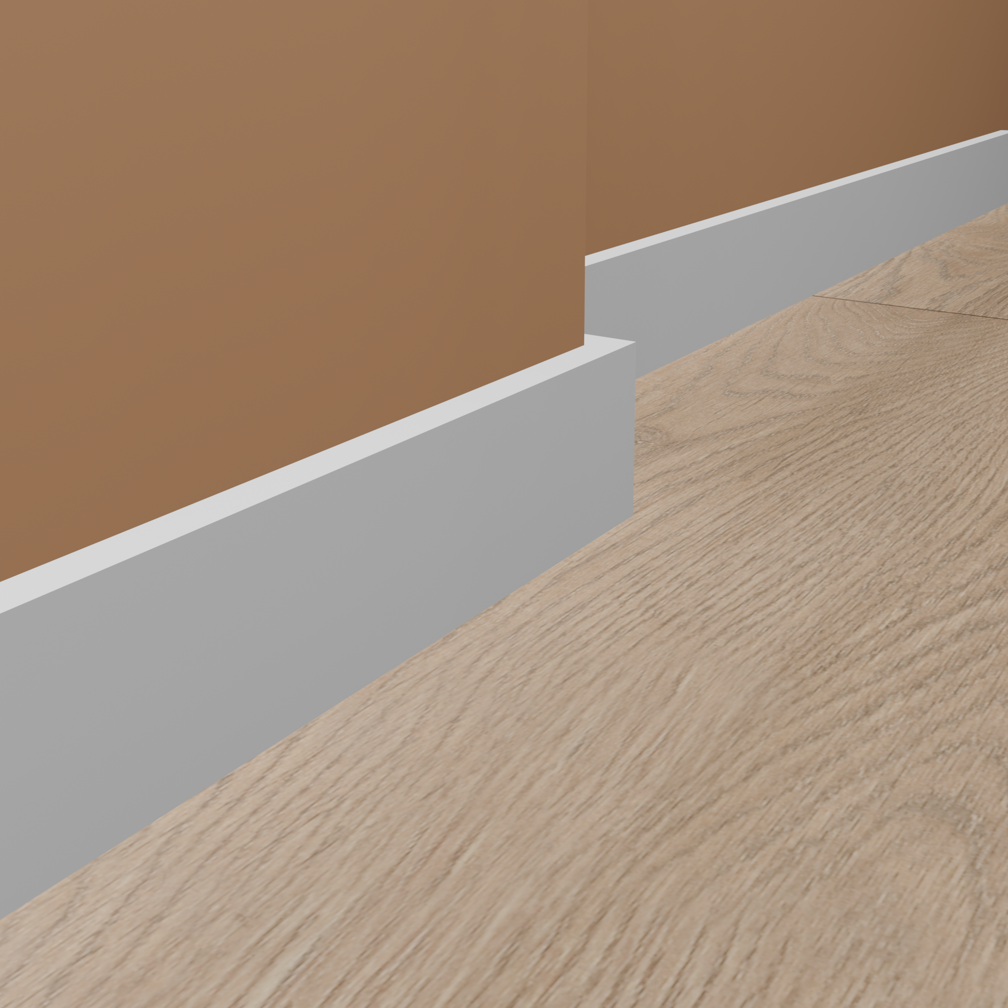 - GRÖSSE: Die Fußleiste mit den Abmessungen 10 x 80 x 2500 mm schafft einen sauberen Übergang zwischen Boden und Wand.
