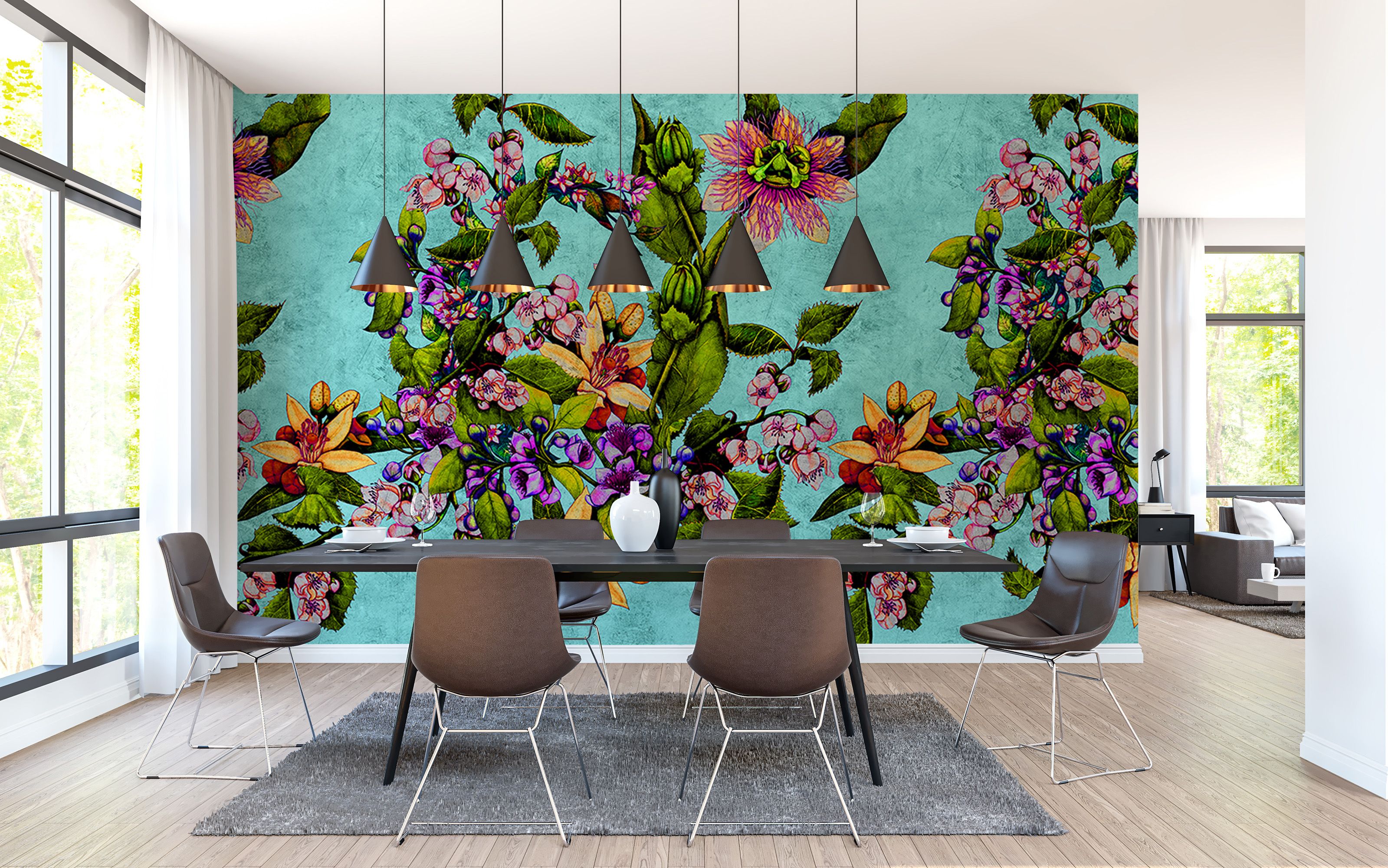 Tadessi Fototapete Blumen M1-No.60959 Digitaldruck Tapete Grün Blau - Floral