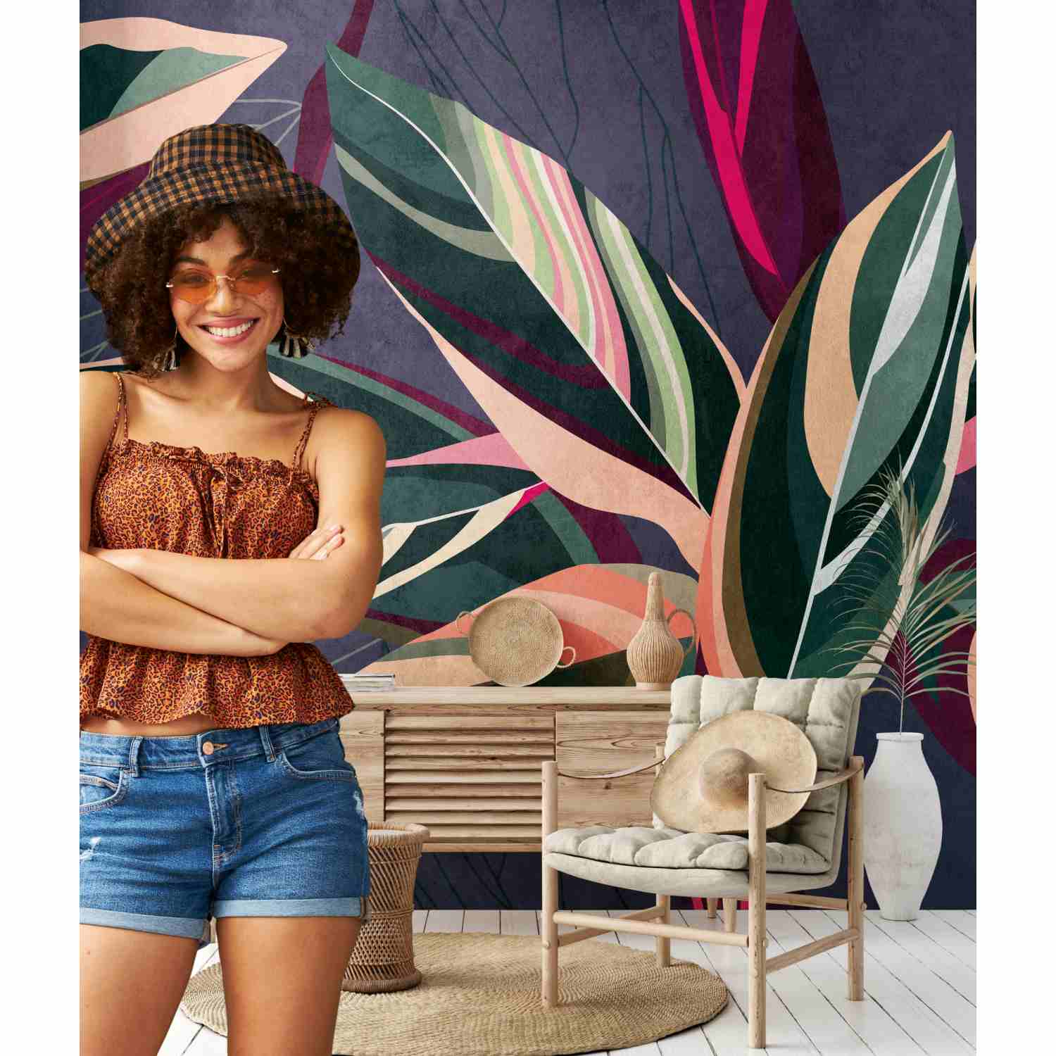Tadessi Fototapete Dschungel M1-No.10296 Digitaldruck Tapete Lila Grün - Blätter Botanical