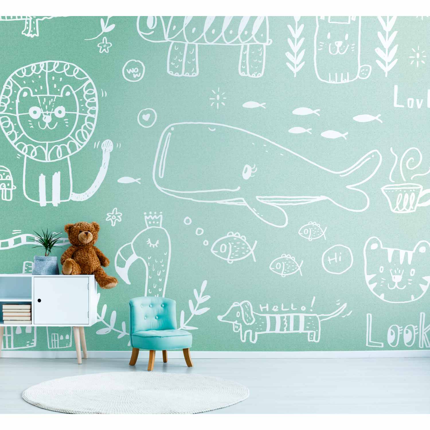 Tadessi Fototapete Tiere M1-No.10323 Digitaldruck Tapete Grün Weiß Wal - Modern Kinderzimmer Löwe