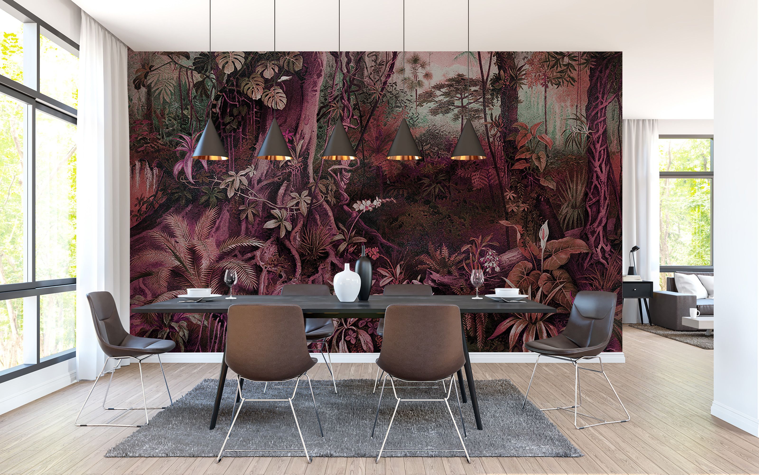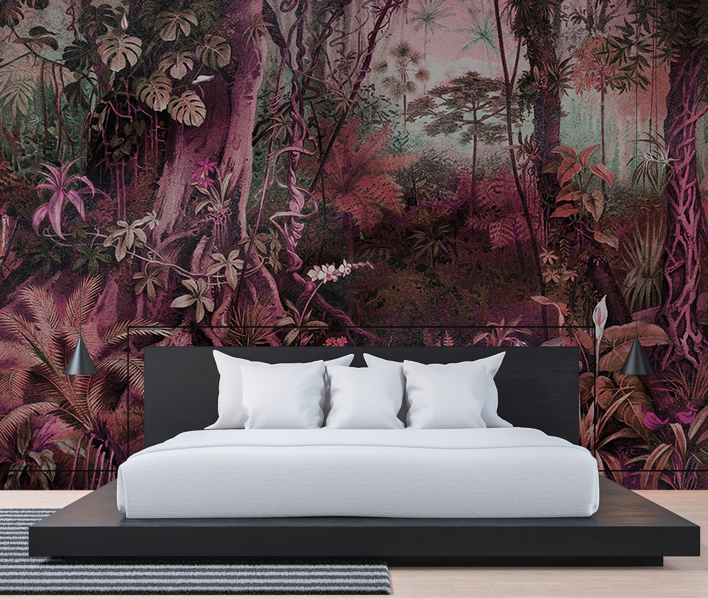 Tadessi Fototapete Wald M1-No.60622 Digitaldruck Tapete Lila Grün - Dschungel