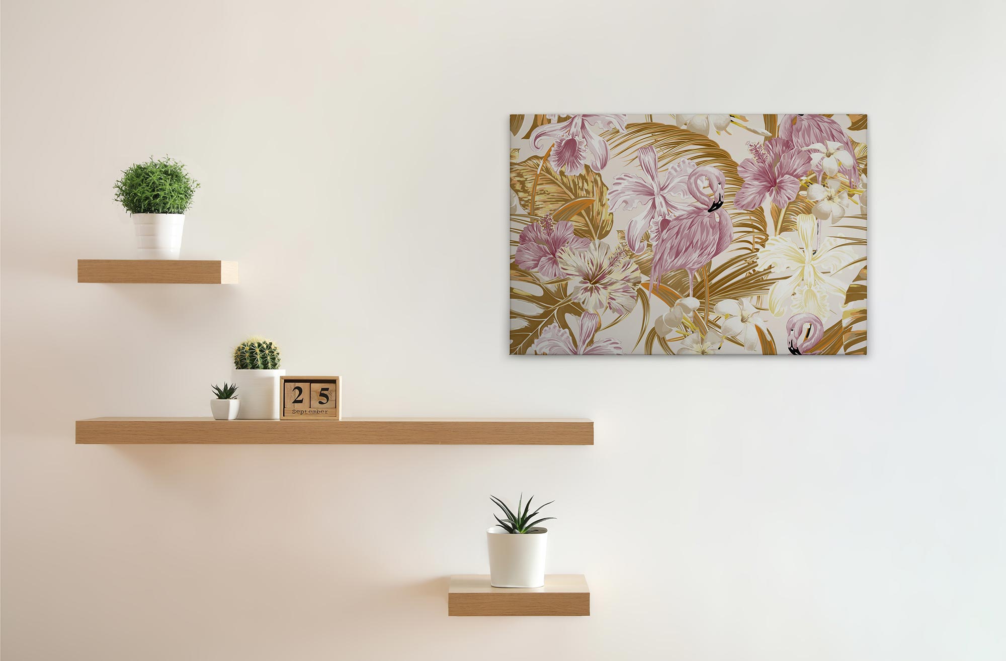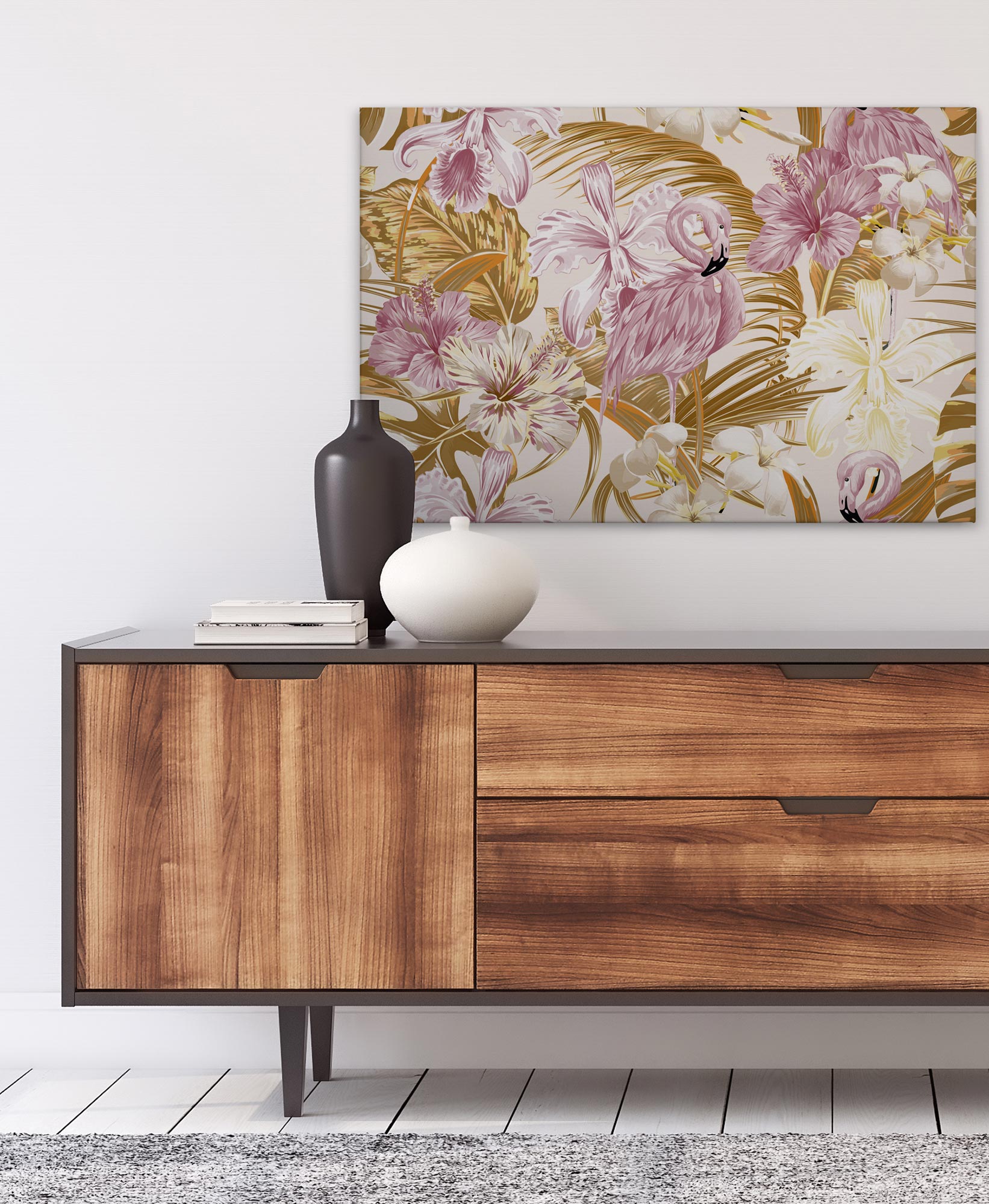 Tadessi Leinwandbild Flamingo - 60 x 90 cm - M1-No.50016 - Keilrahmen in Gelb Rosa