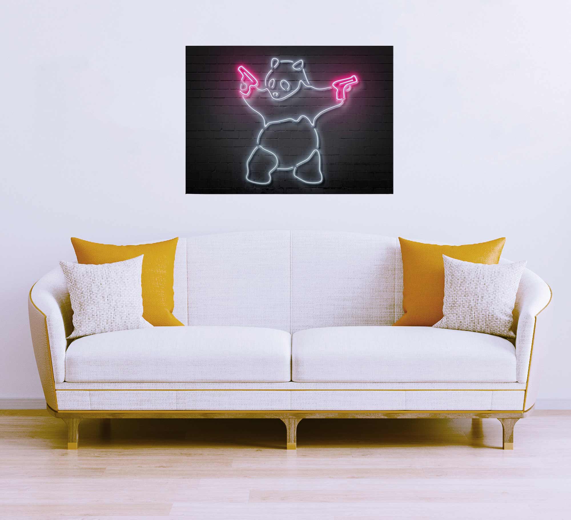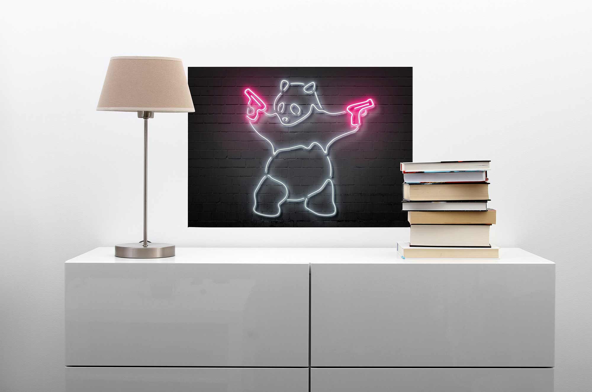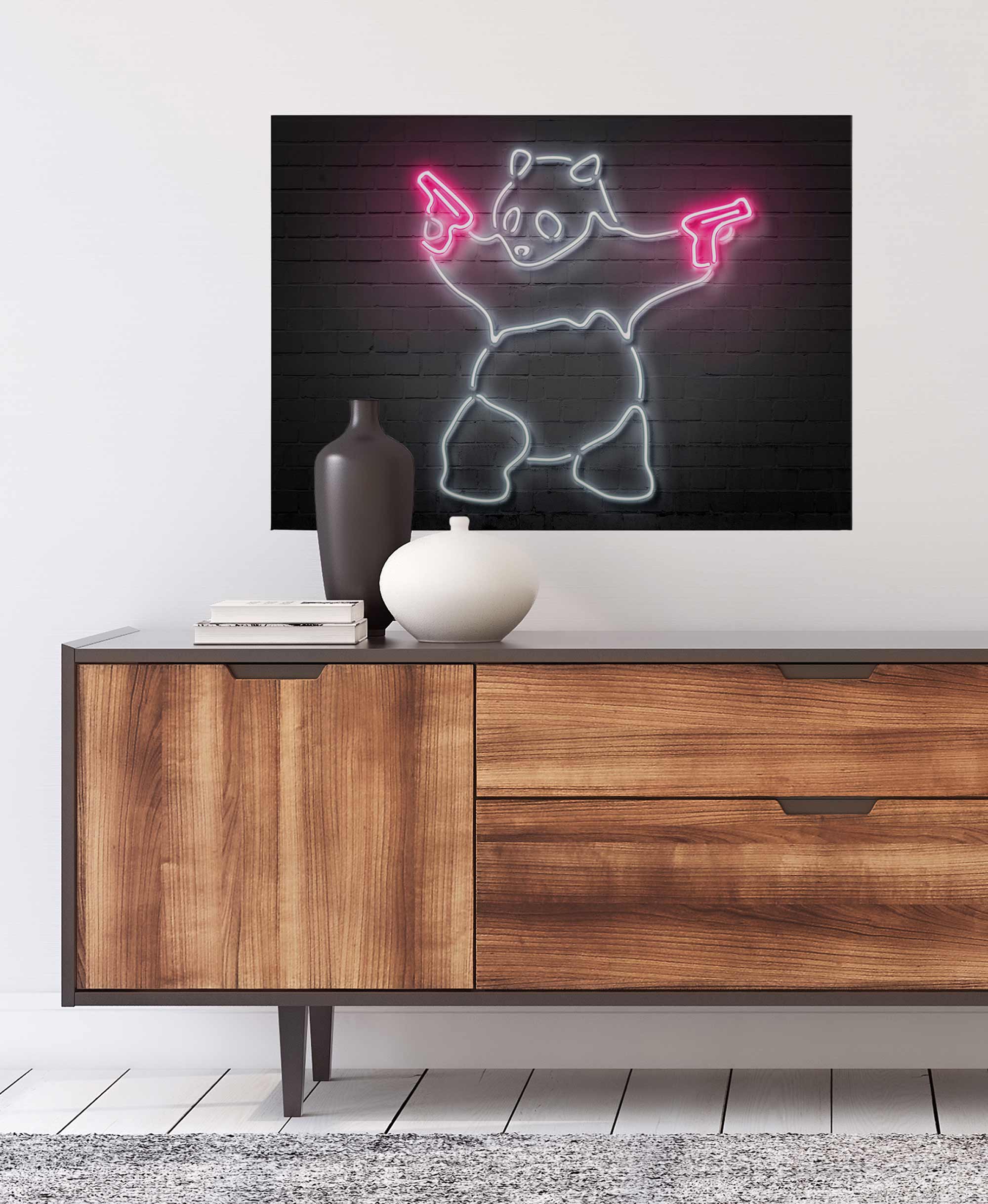 Tadessi Leinwandbild Panda Bär LED Optik - 50 x 70 cm - M1-No.50330 - Keilrahmen in Rosa Schwarz