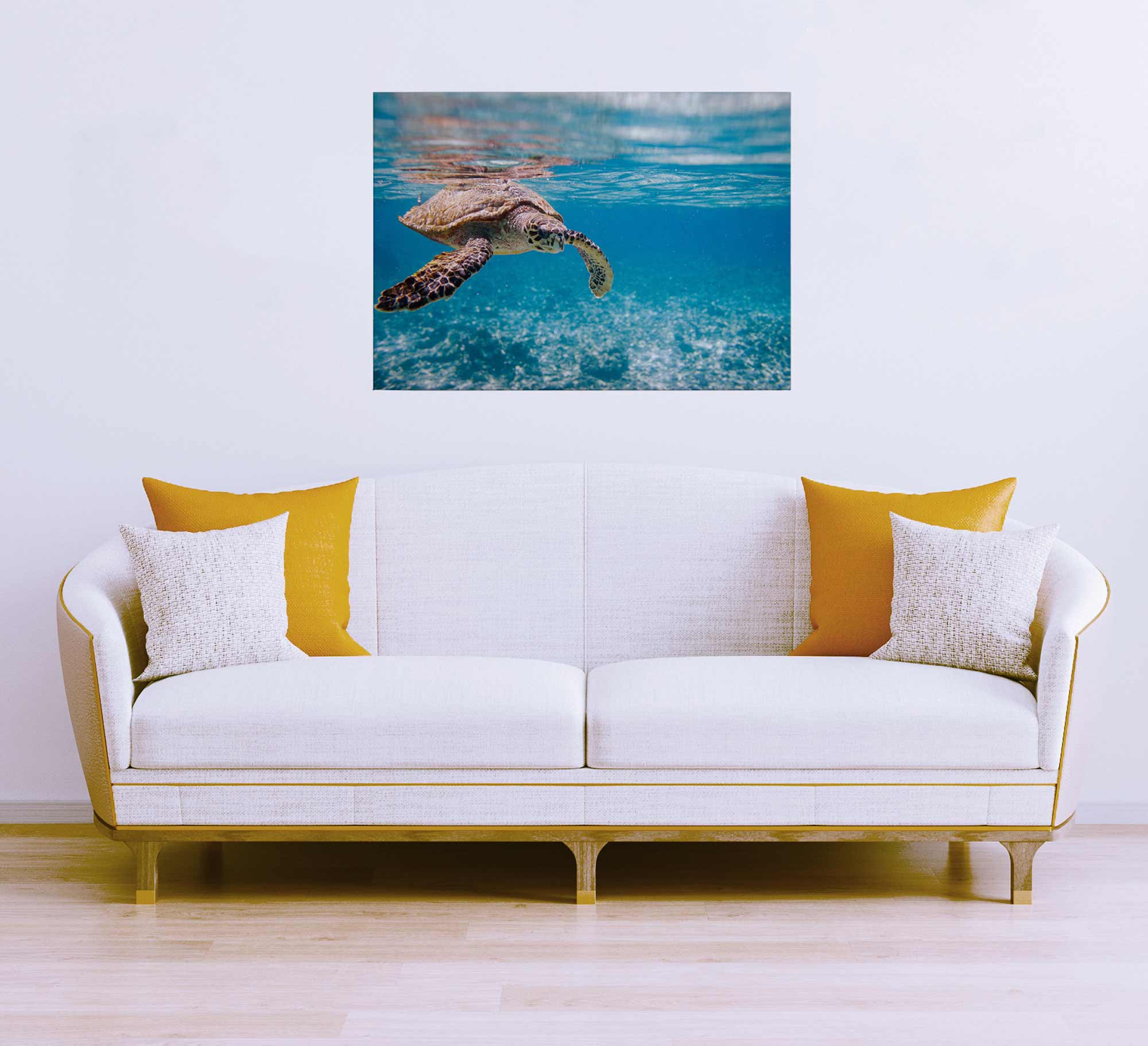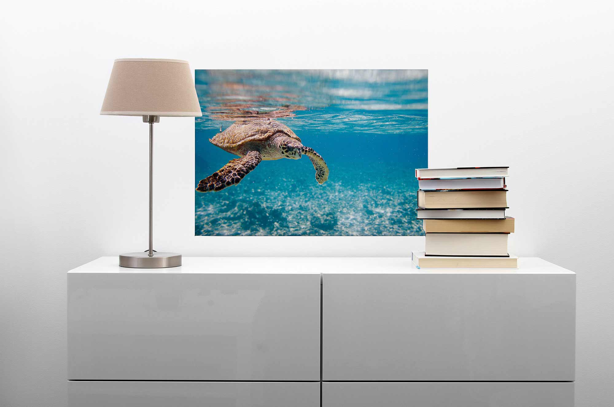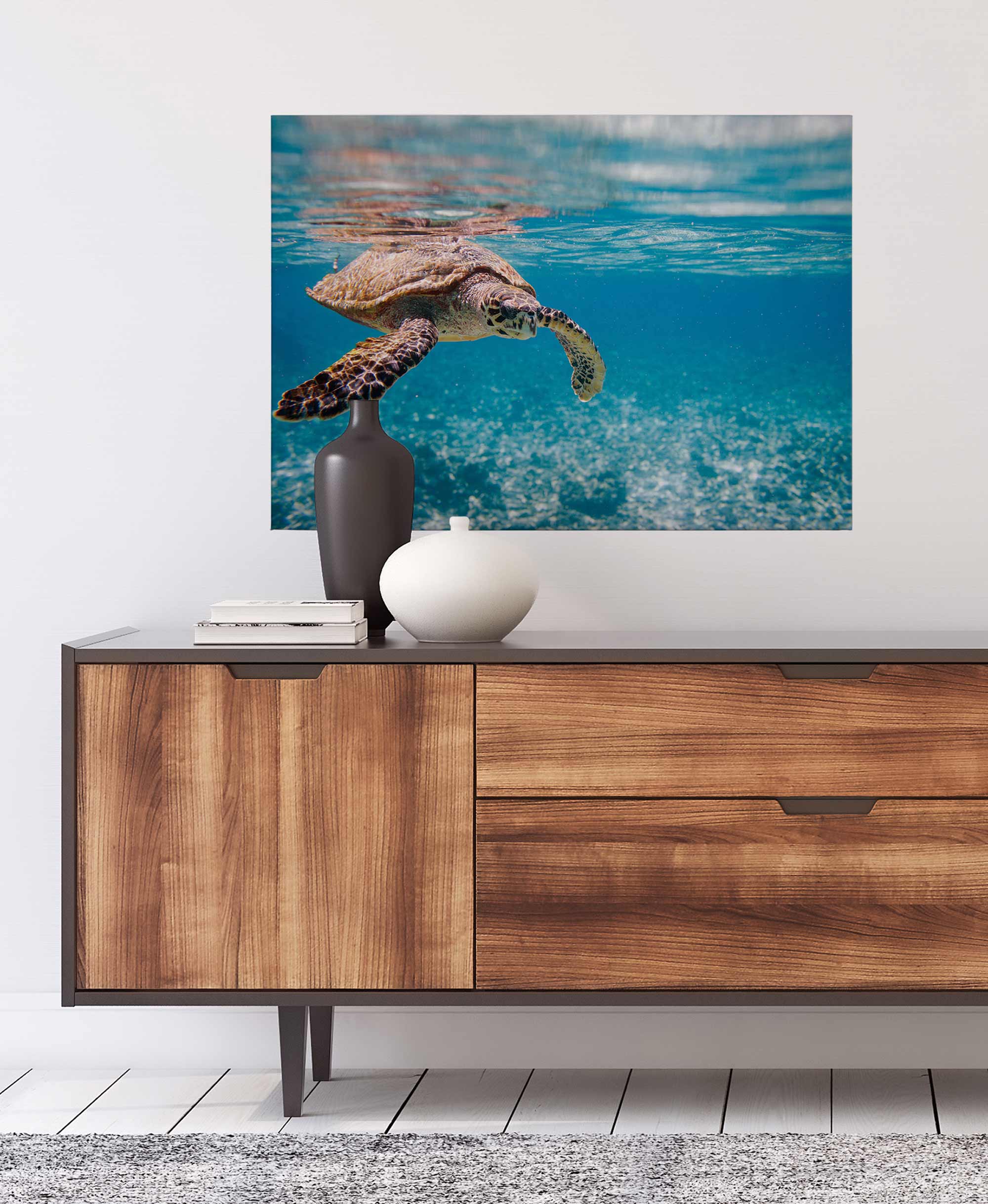 Tadessi Leinwandbild Schildkröte Unterwasser - 50 x 70 cm - M1-No.50288 - Keilrahmen in Blau