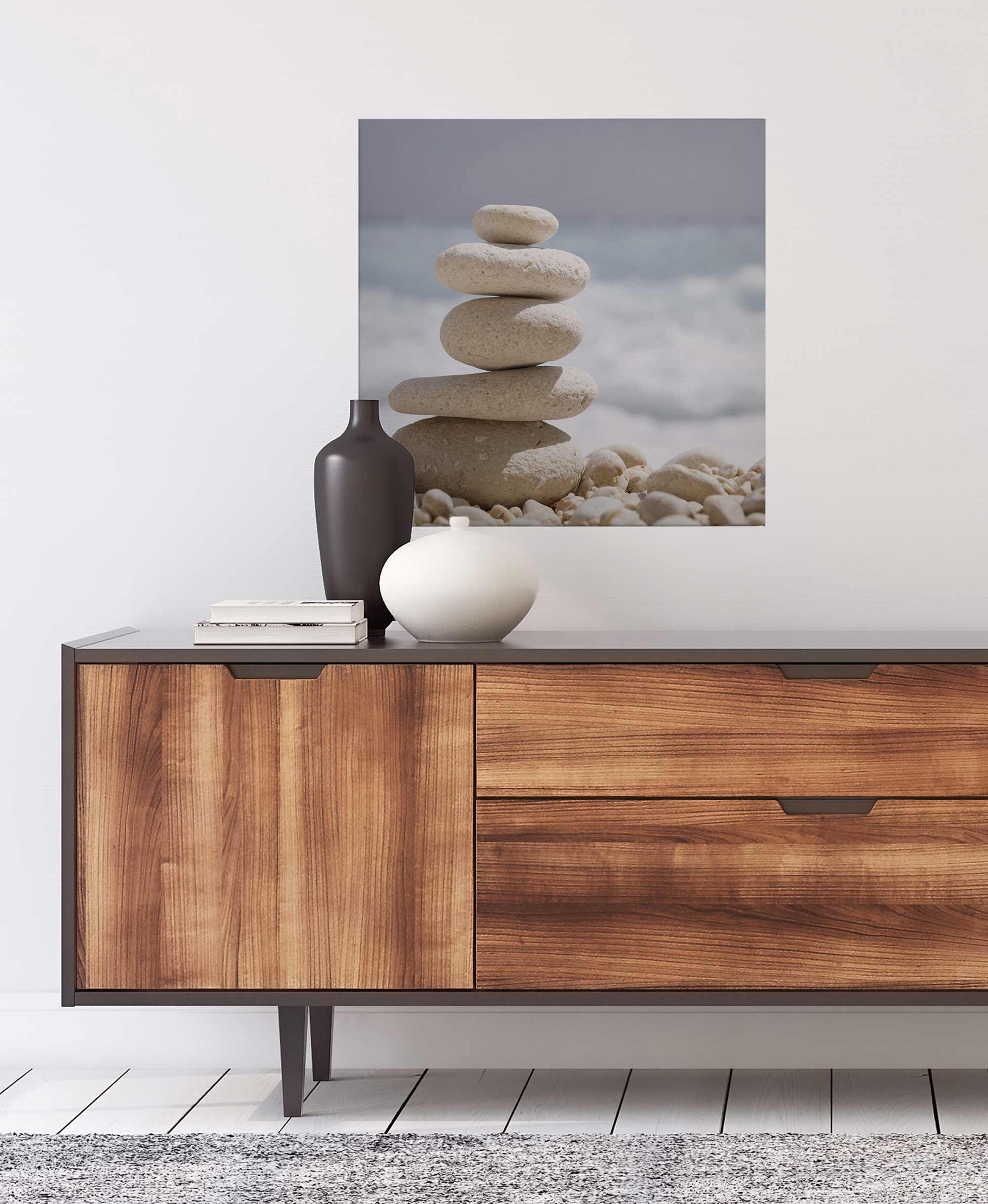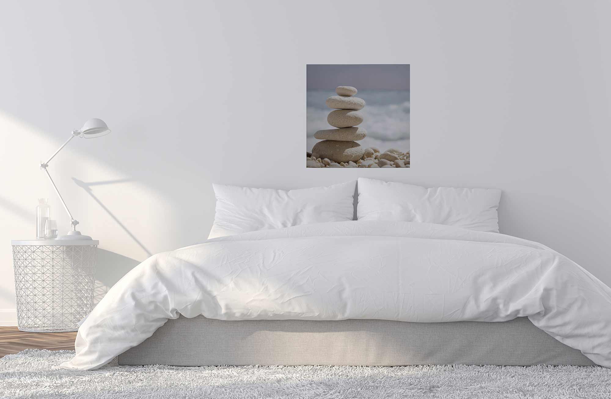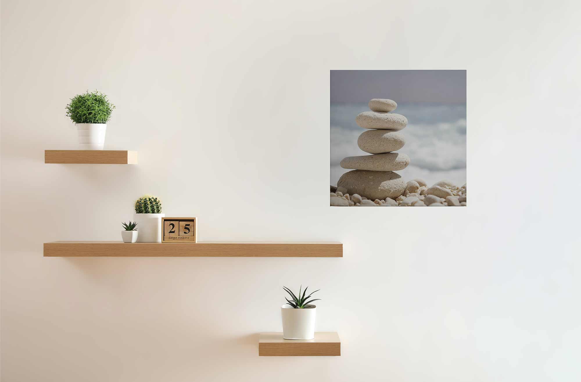 Tadessi Leinwandbild Steine Strand Meer - 50 x 50 cm - M1-No.50509 - Keilrahmen in Grau Blau