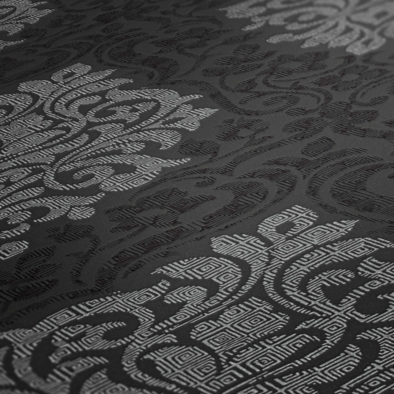 Tapete Barock Jacopo M1-No.2308 Vliestapete Silber Schwarz Ornament Klassik Barocktapete