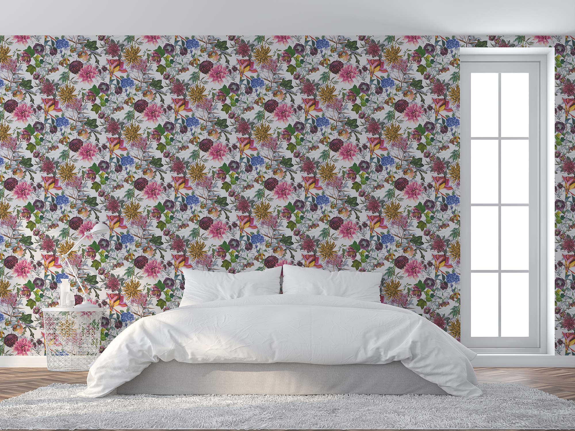 Modern und zeitlos: Die Blumentapete in floralen Optiken ist für viele Räume geeignet und erfreut sich großer Beliebtheit.