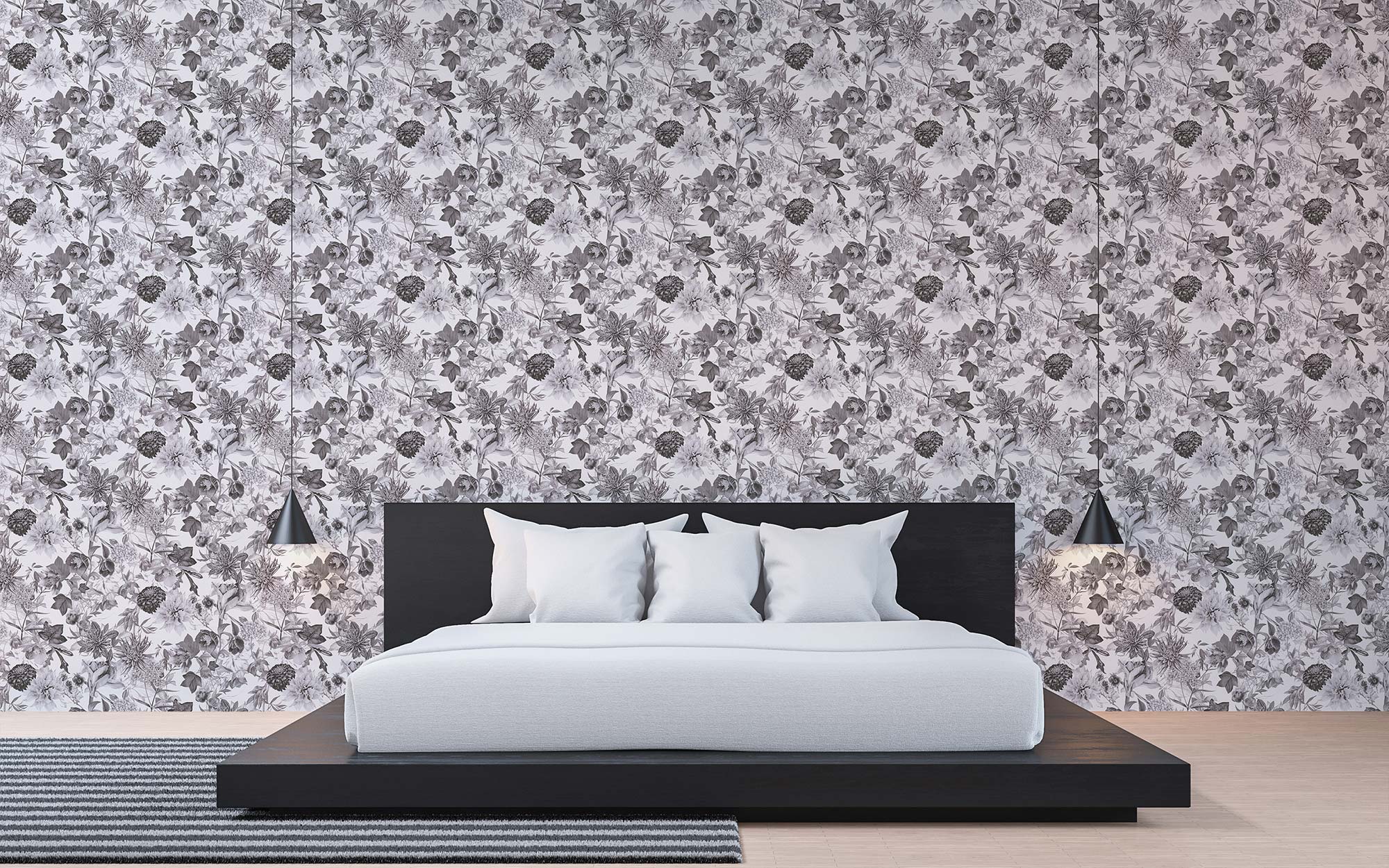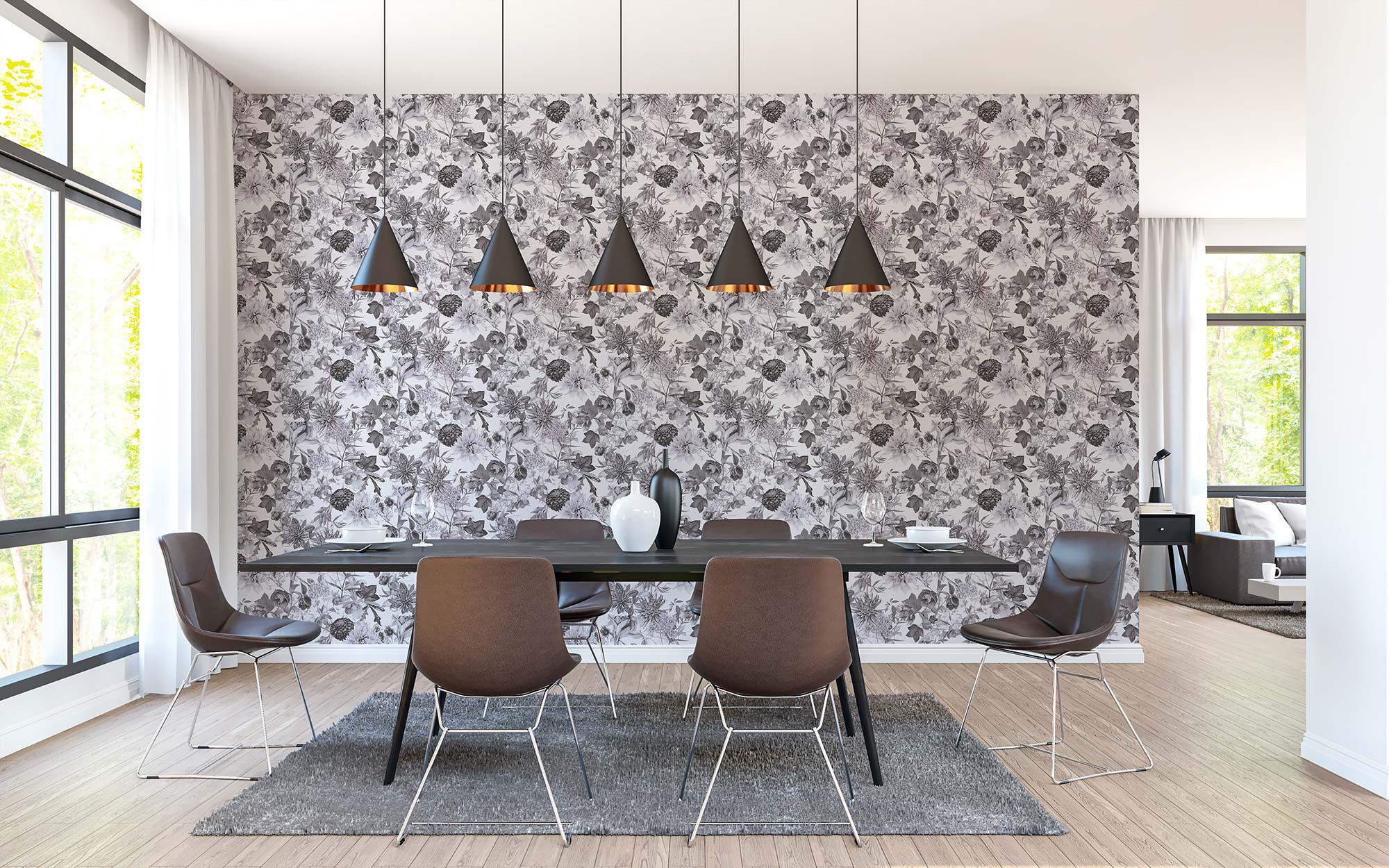 Modern und zeitlos: Die Blumentapete in floralen Optiken ist für viele Räume geeignet und erfreut sich großer Beliebtheit.