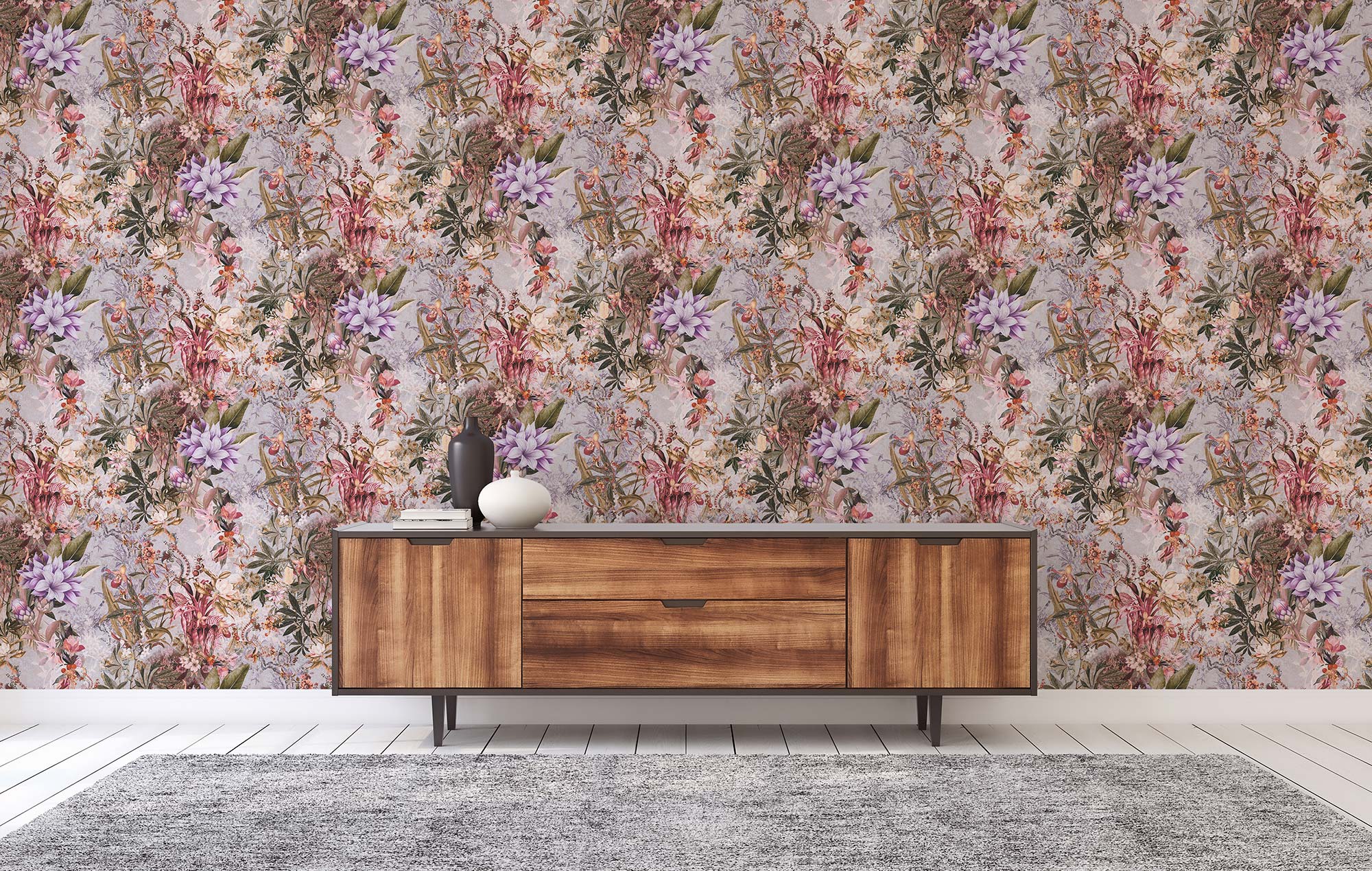 Modern und zeitlos: Die Blumentapete in floralen Optiken ist für viele Räume geeignet und erfreut sich großer Beliebtheit.