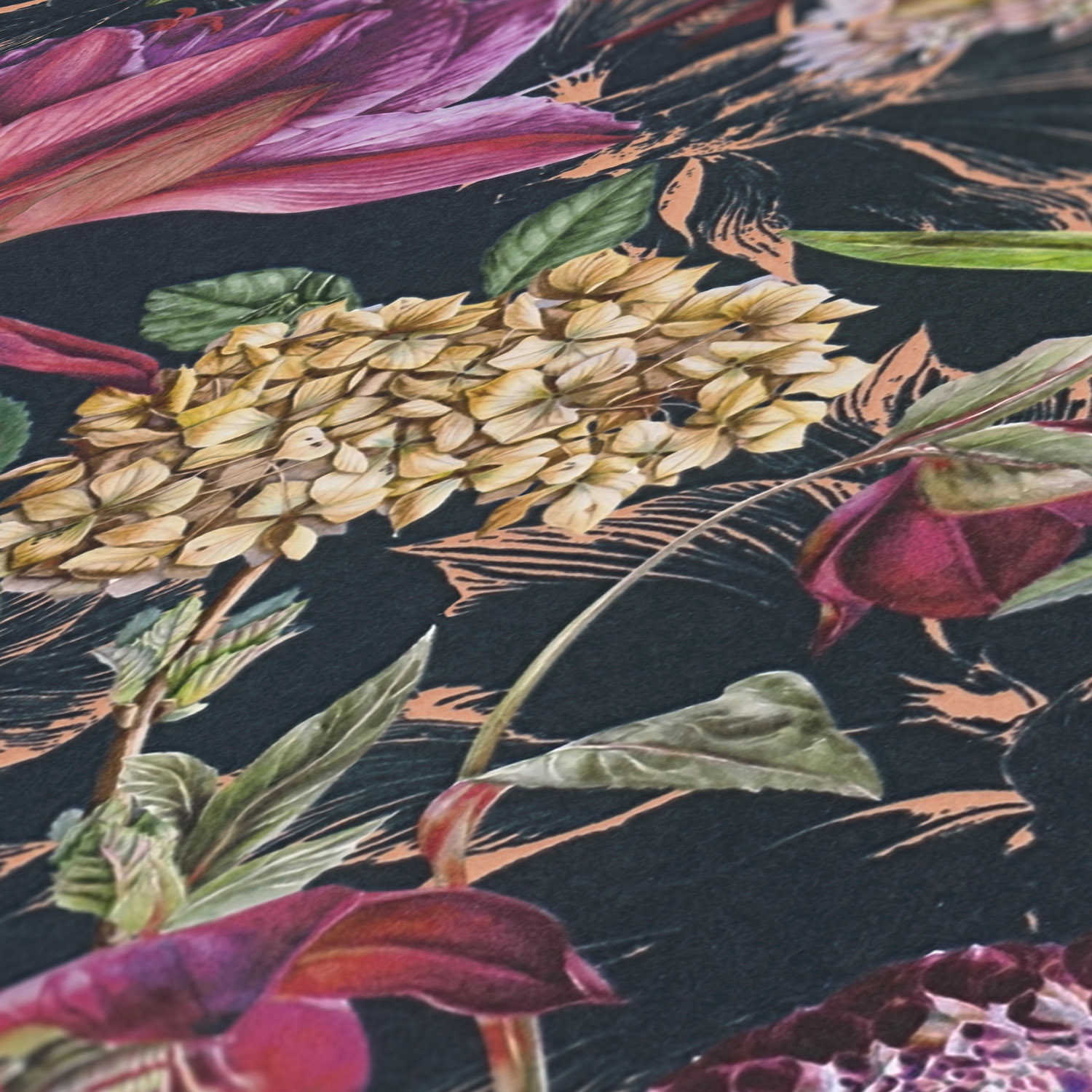 Tapete Dschungel Camilla M1-No.777 | Vliestapete | Grün | Schwarz | Blumenoptik | Floral