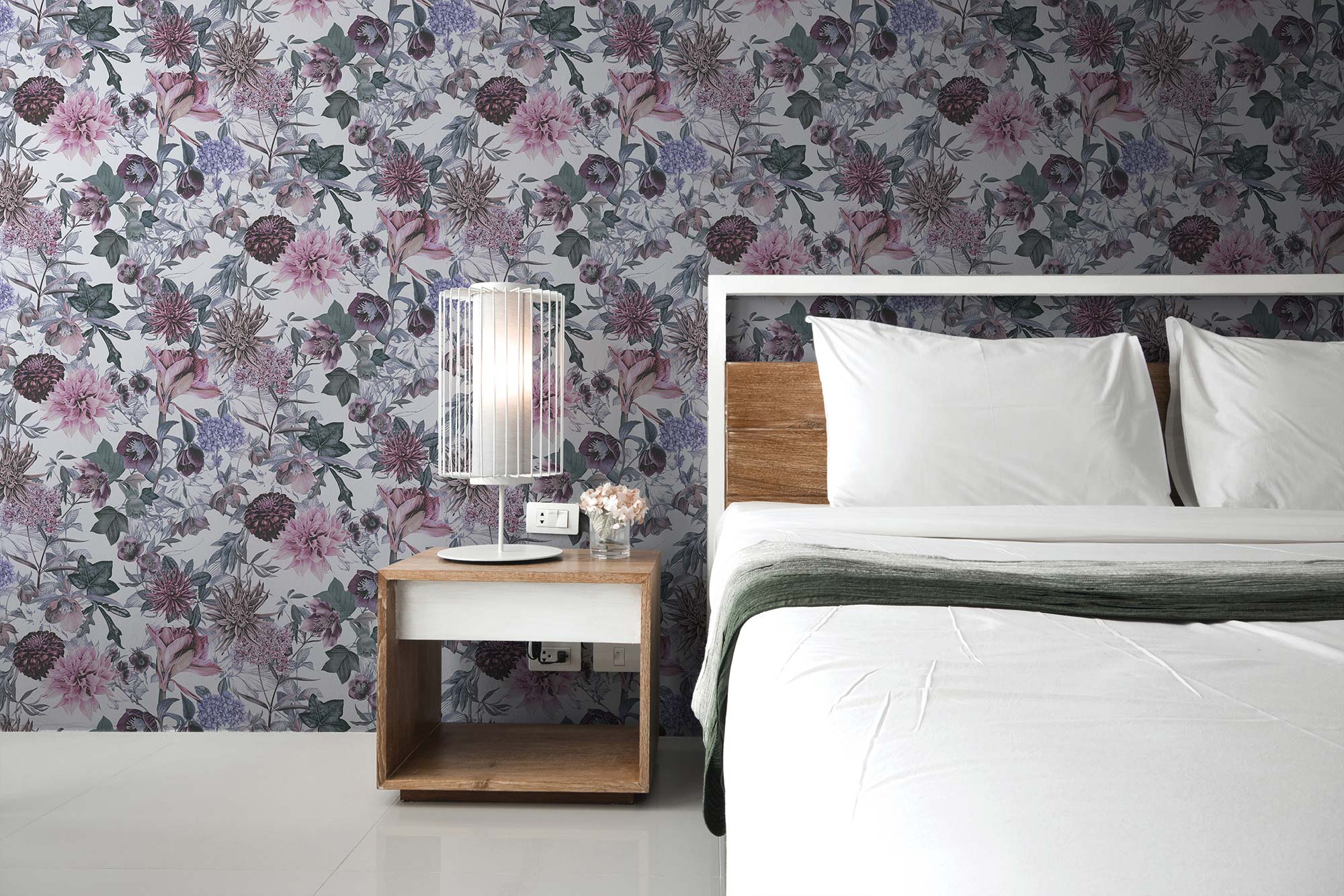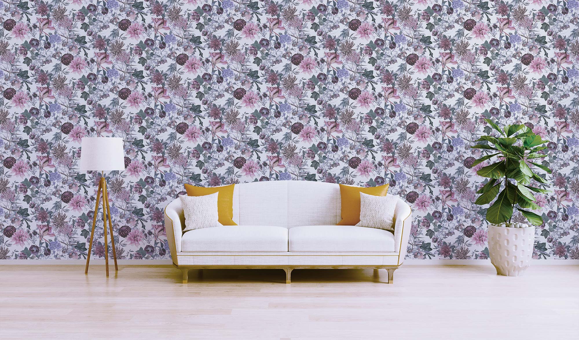 Tapete Dschungel Enrico M1-No.773 | Vliestapete | Weiß | Lila | Blumenoptik | Floral