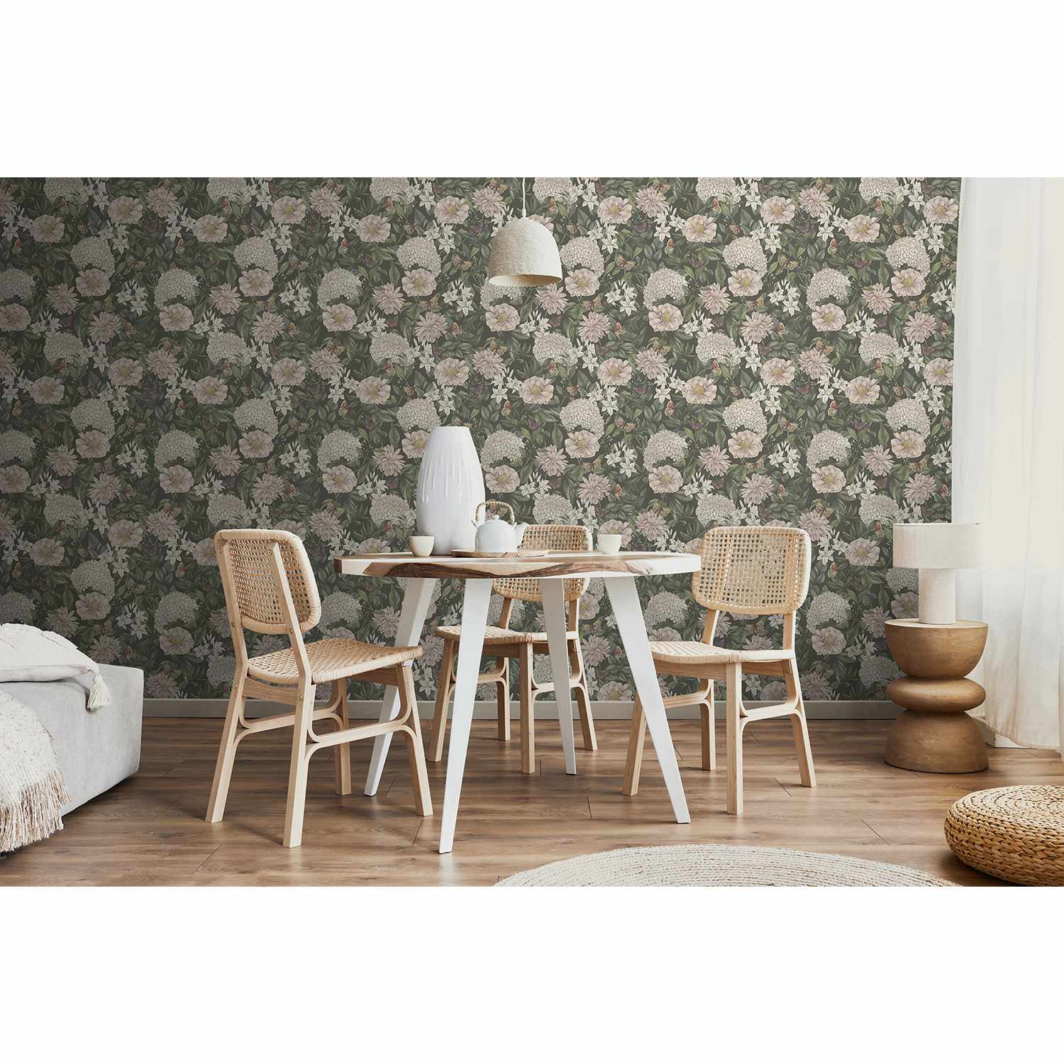 Floraler Chic mit Blumentapeten