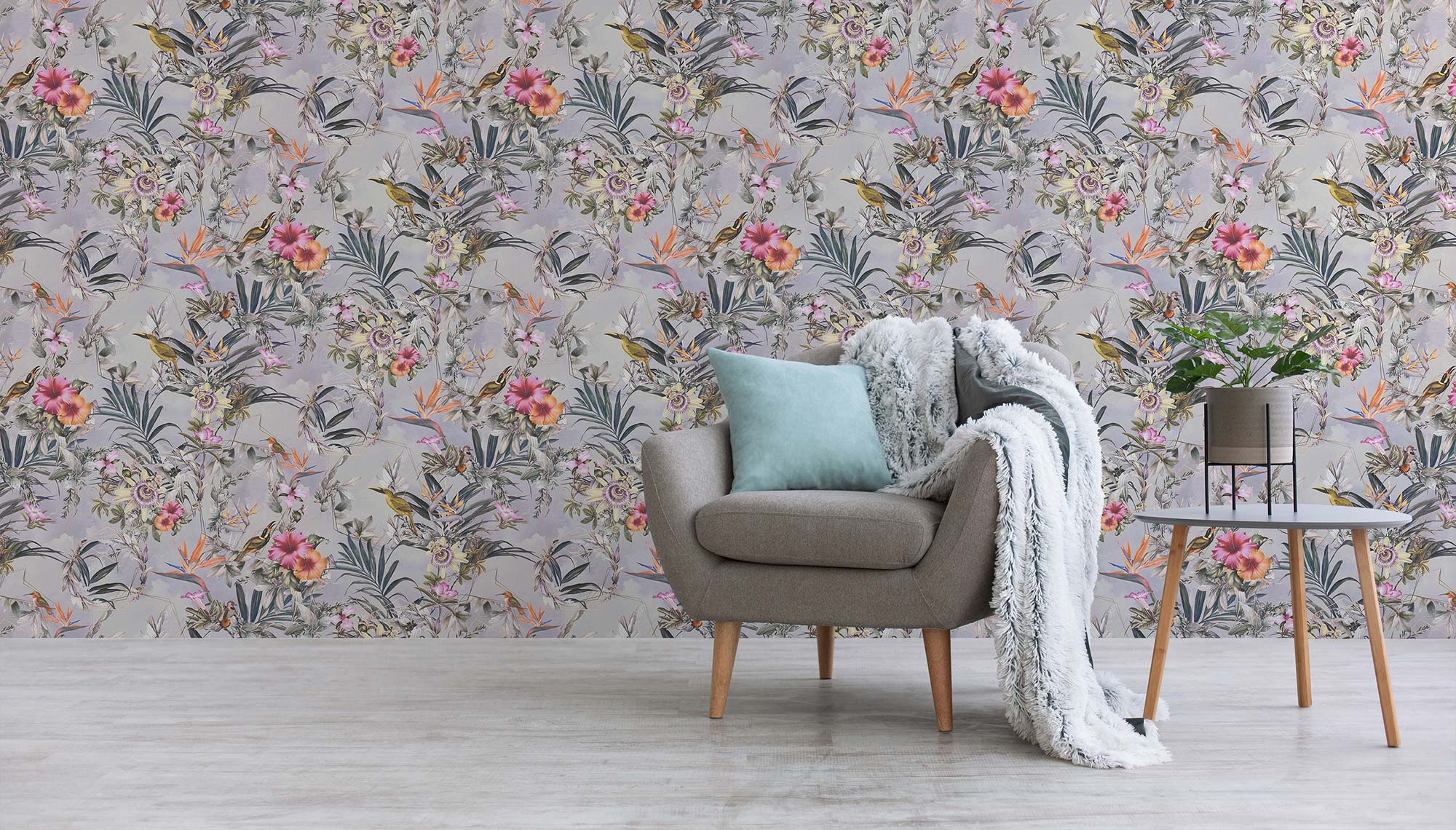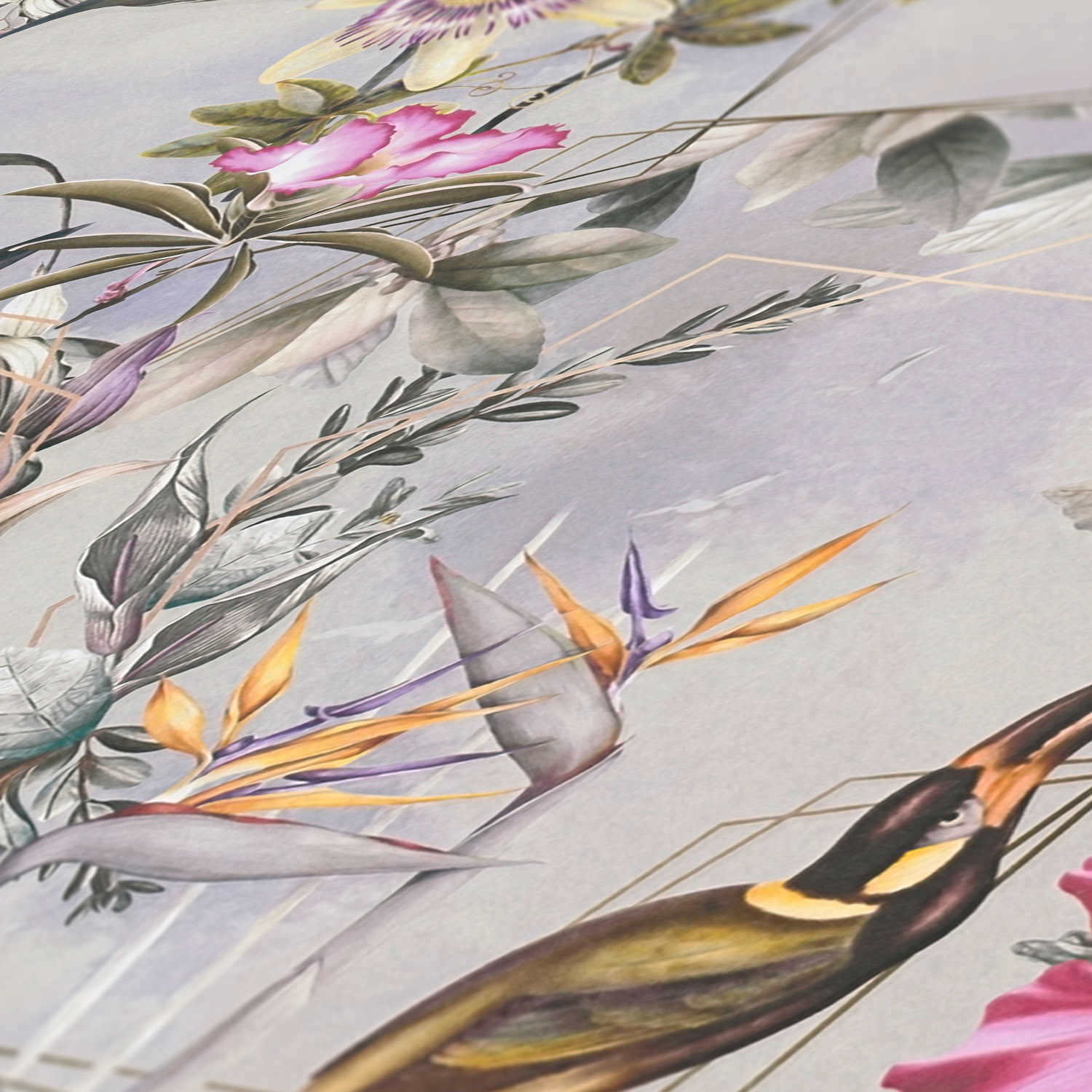 Tapete Tiere Maria M1-No.788 | Vliestapete | Grau | Rosa | Blumenoptik | Dschungel