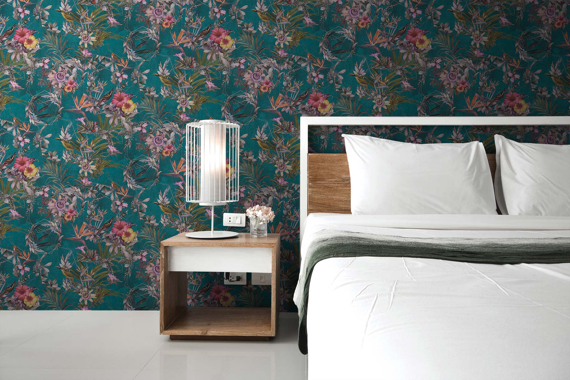 Tapete Tiere Maria M1-No.789 | Vliestapete | Blau | Grün | Blumenoptik | Dschungel
