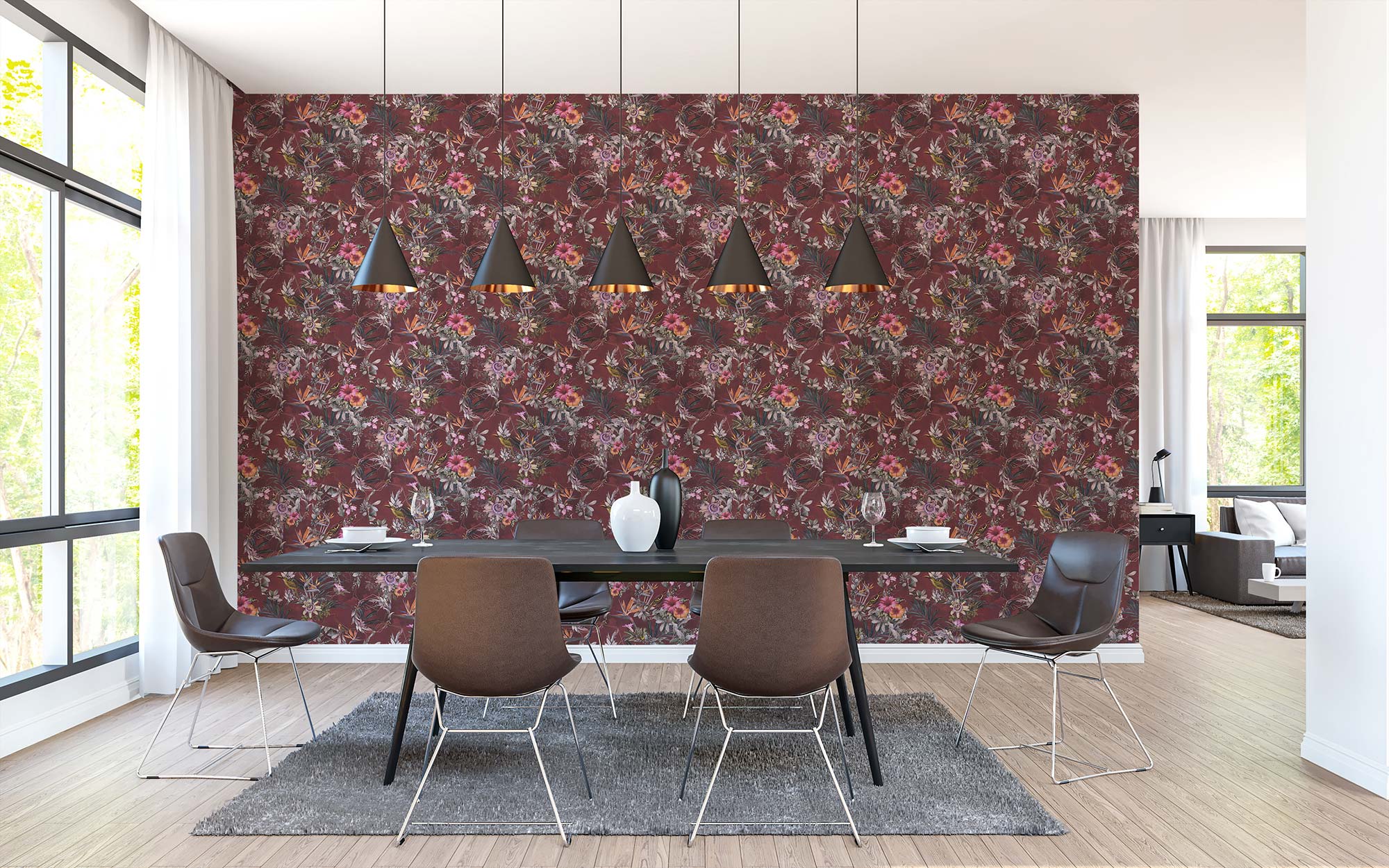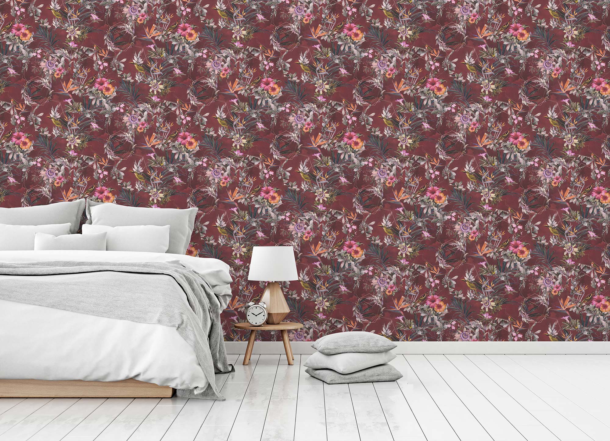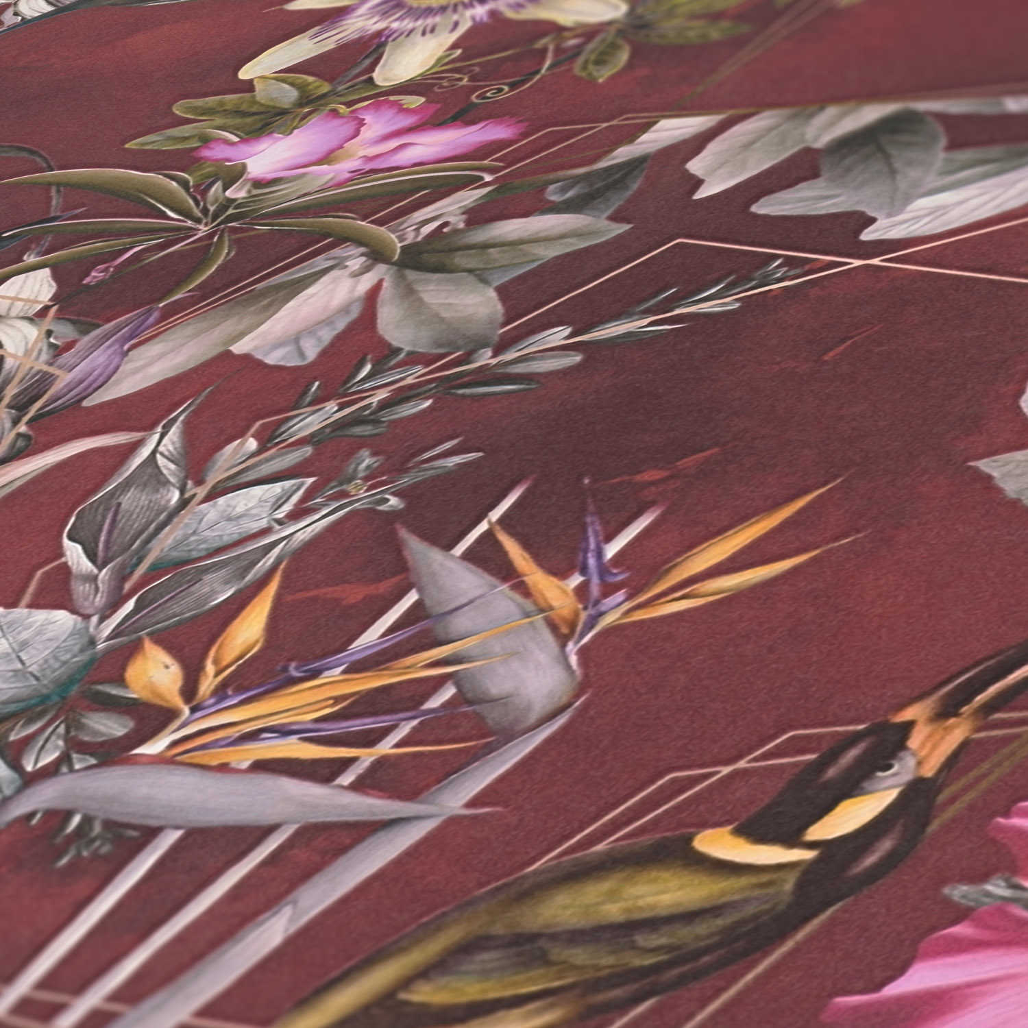 Tapete Tiere Maria M1-No.791 | Vliestapete | Rot | Grün | Blumenoptik | Dschungel