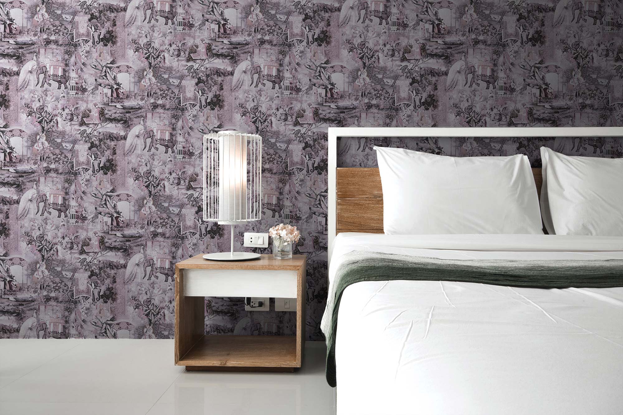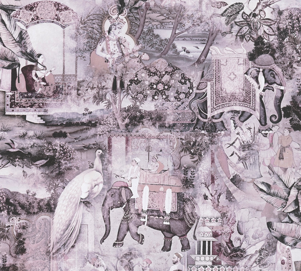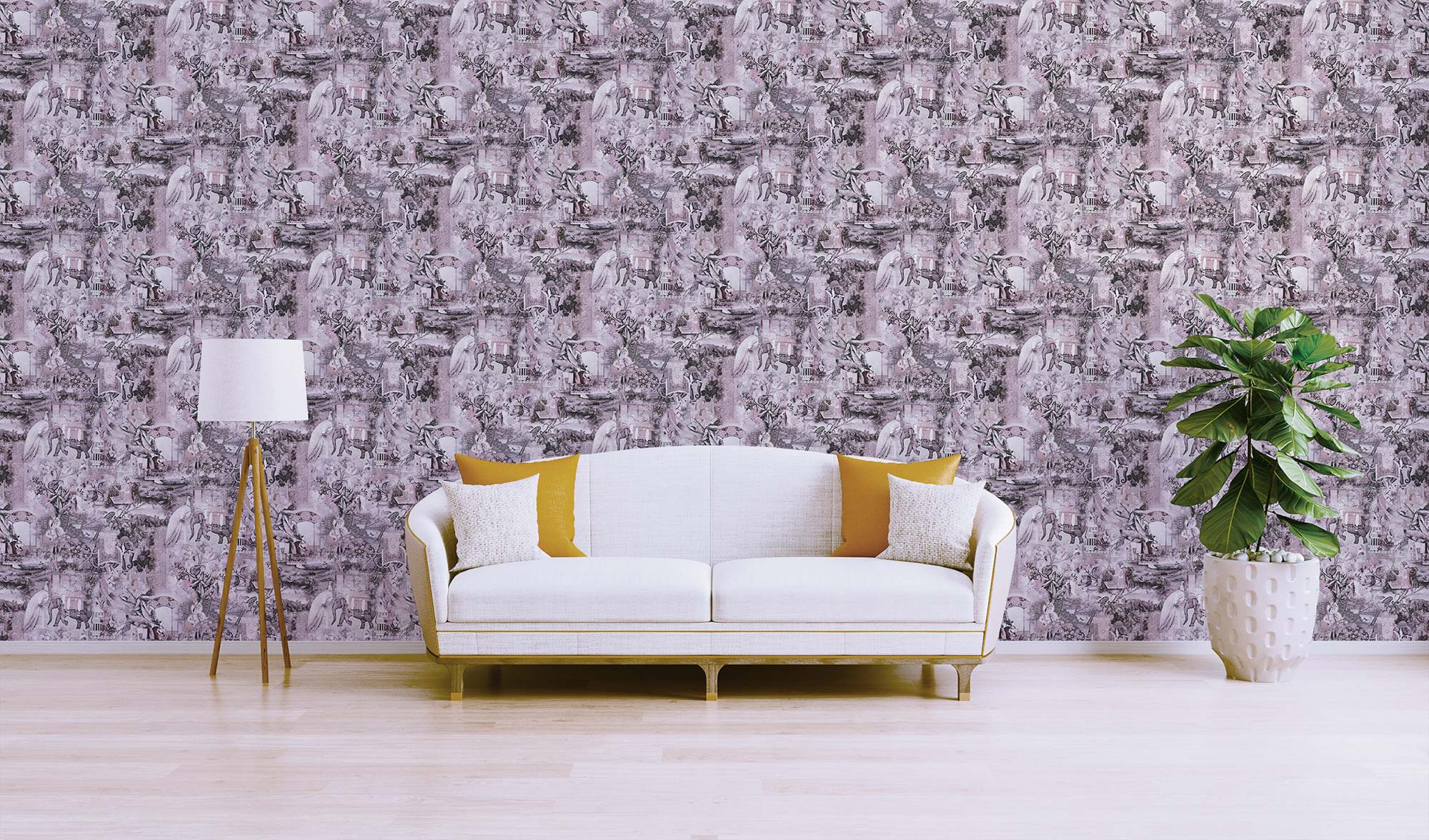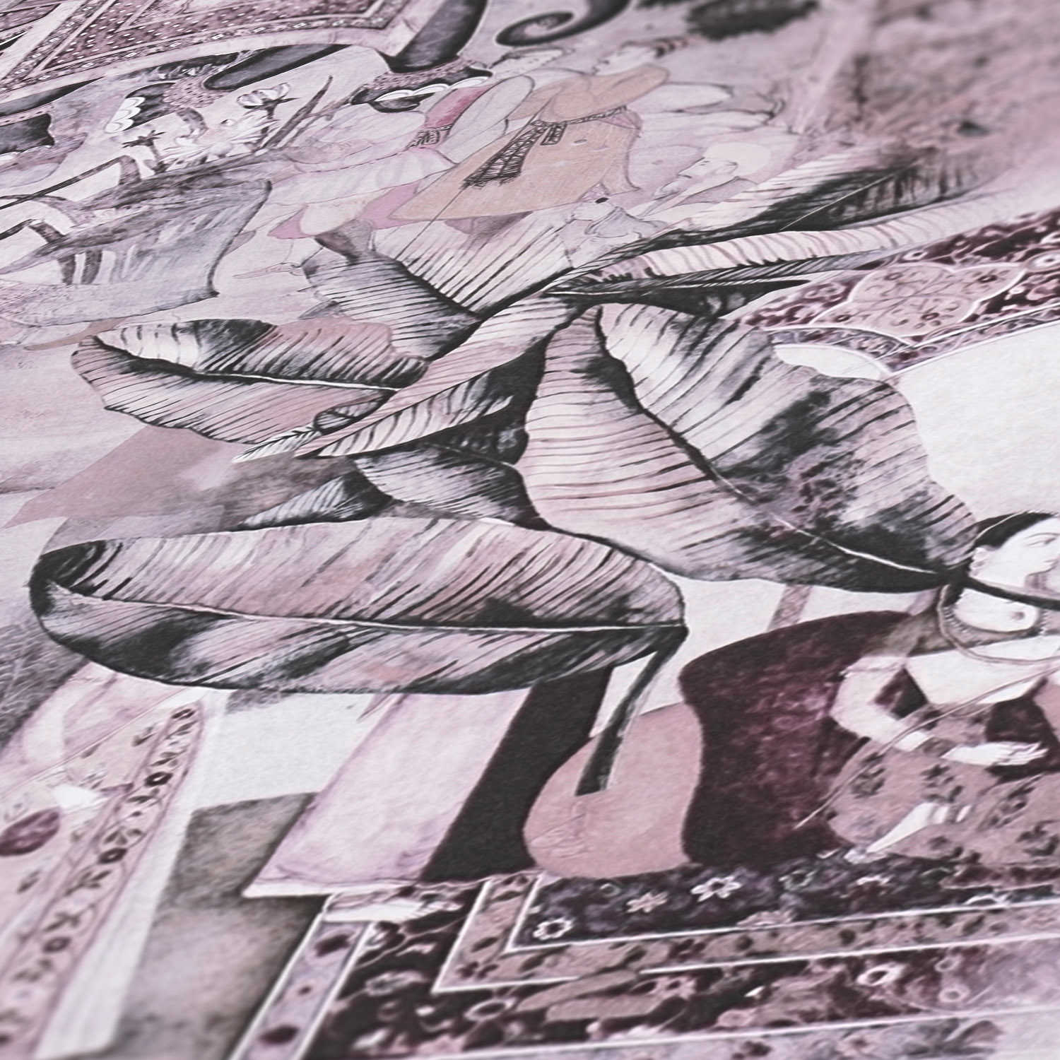 Tapete Vintage M1-No.1694 | Vliestapete | Rosa | Lila | Orientalisch | Tiere
