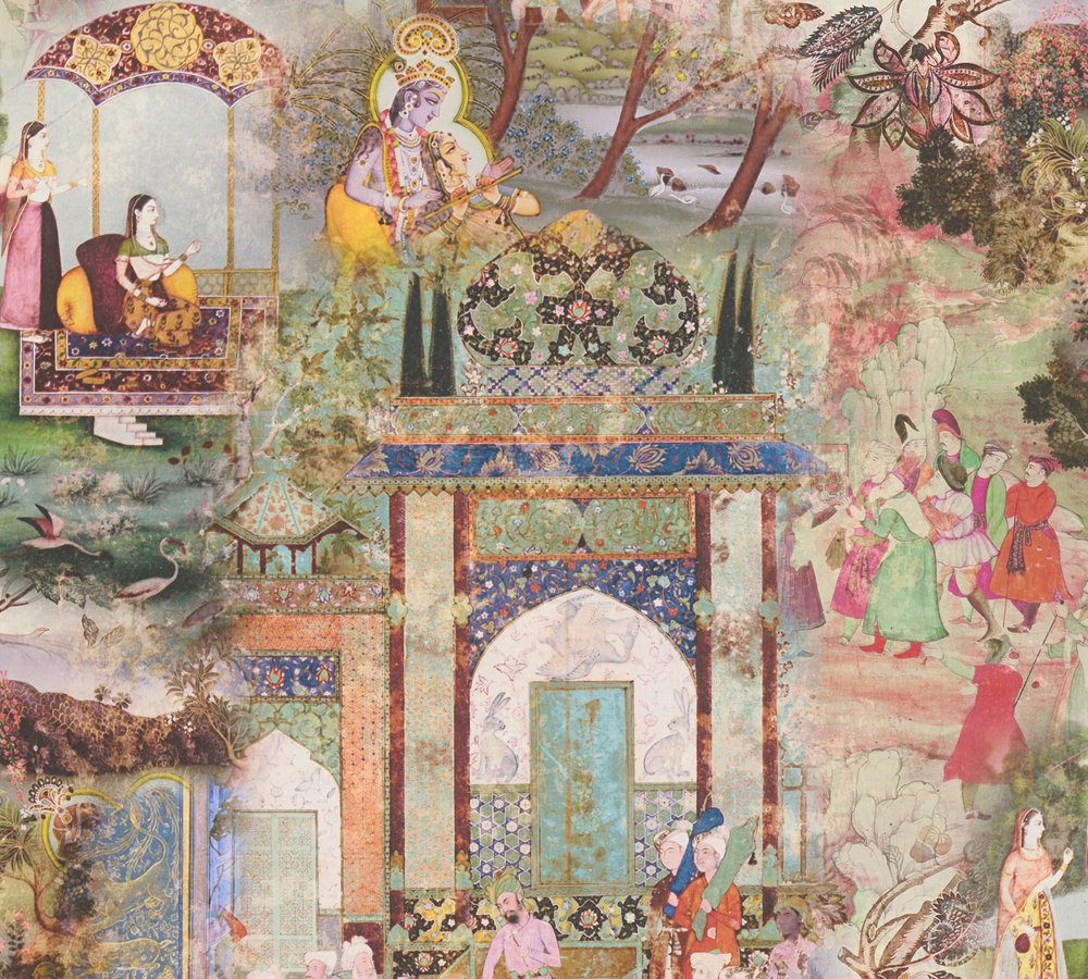 Tapete Vintage M1-No.1698 | Vliestapete | Grün | Orange | Orientalisch | Natur