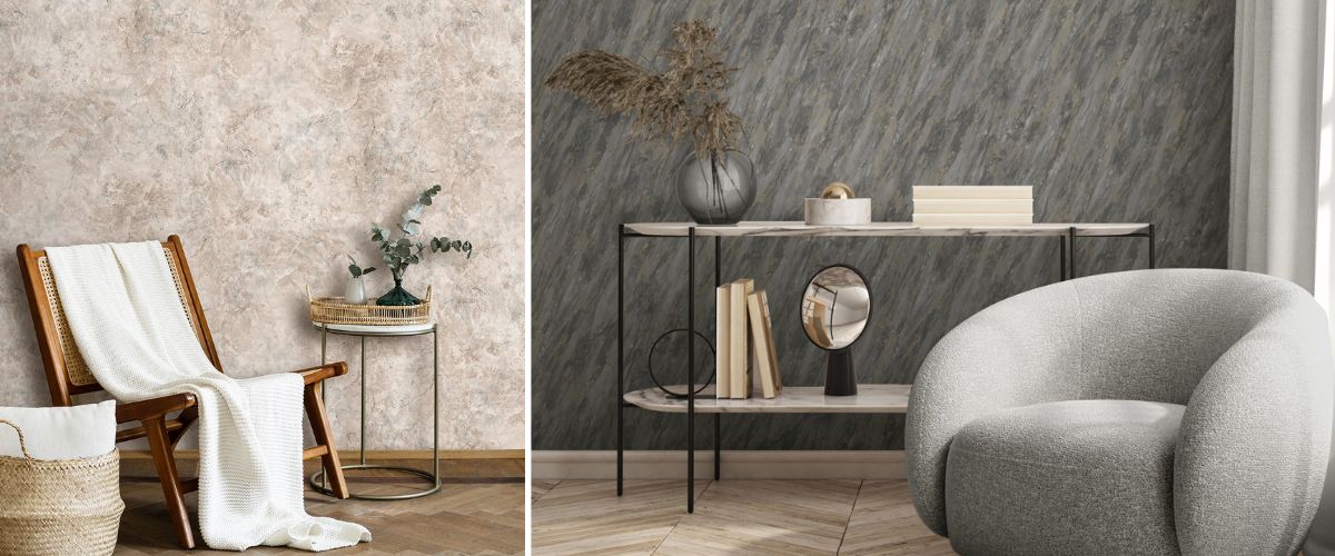 Feine Adern, natürliche Schattierungen und edler Glanz: Tapeten in Marmoroptik bringen Luxus an die Wand, bleiben dabei warm, pflegeleicht und fugenlos. Perfekt für stilvolle Wohn- und Eingangsbereiche.