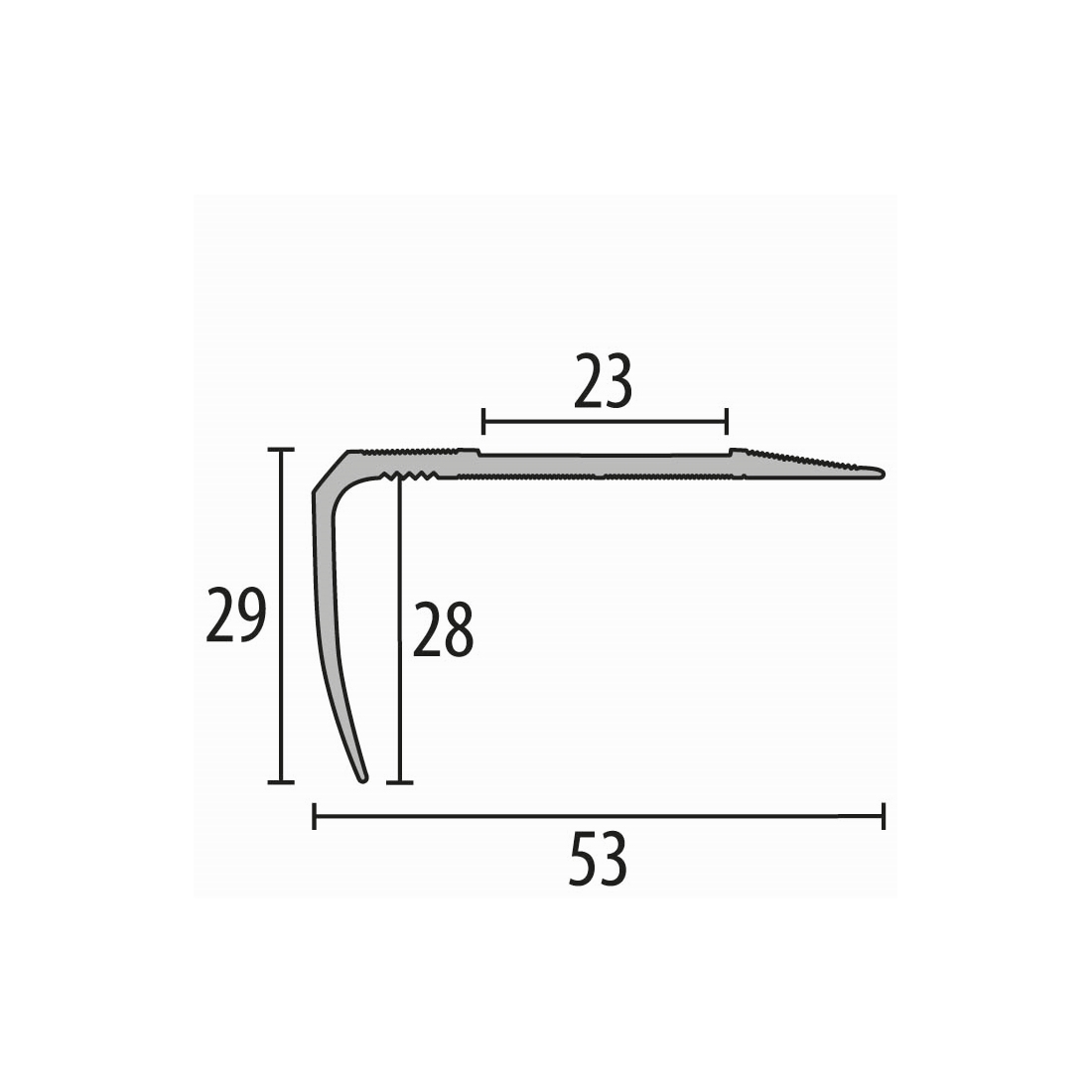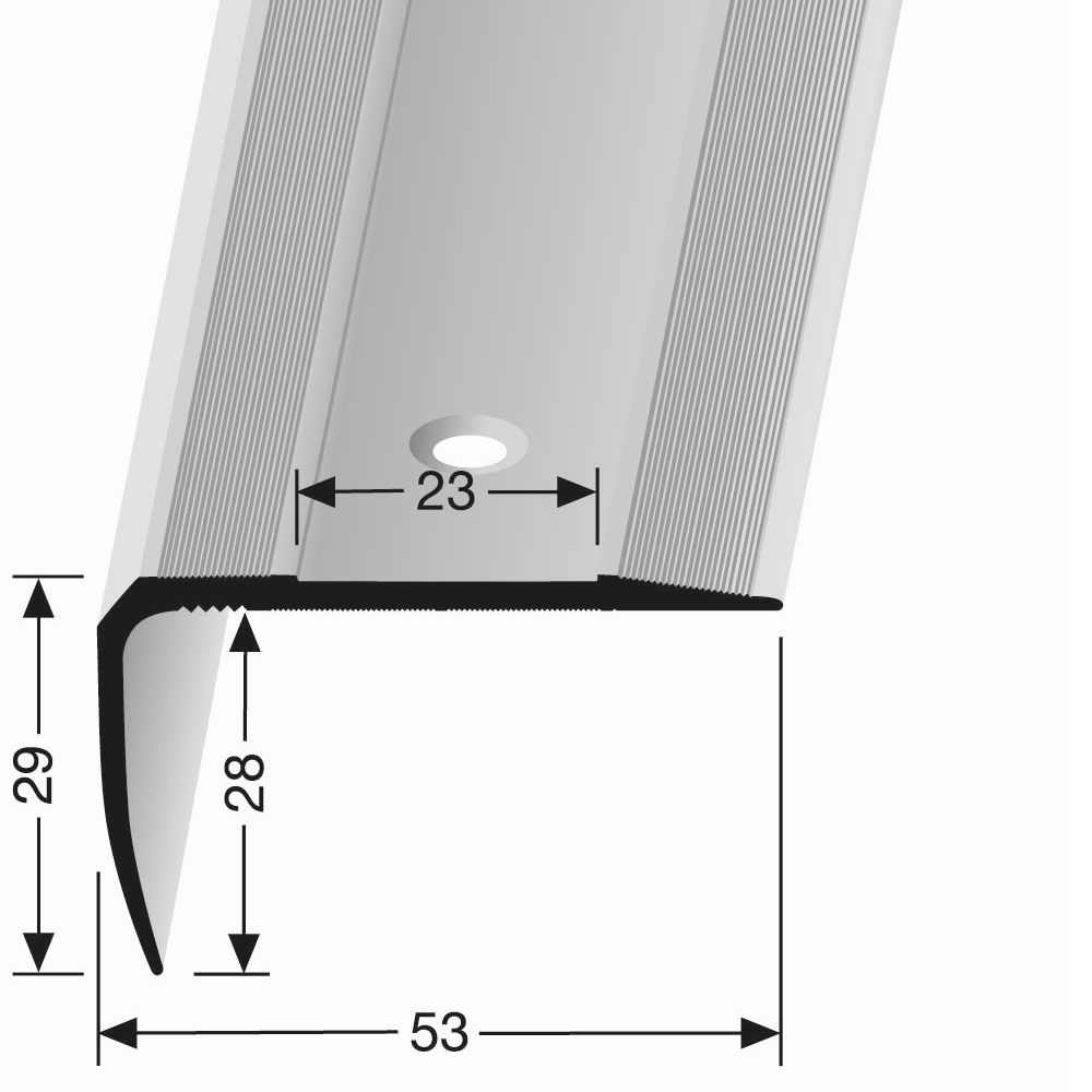 • MAßE: Mit den Maßen 29 x 53 x 2500 mm und einer Einfasshöhe von 0 - 27 mm gewährleisten die Profile einen exakten und optisch ansprechenden Abschluss an den Treppenrändern.