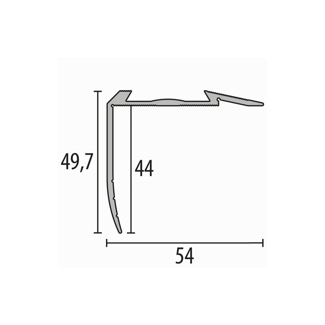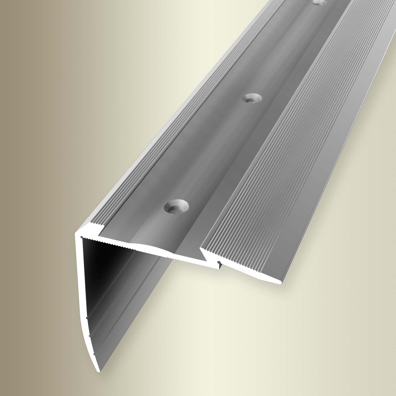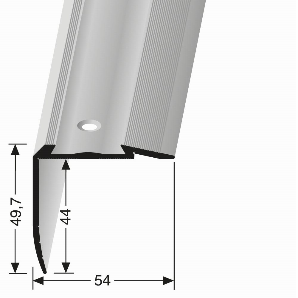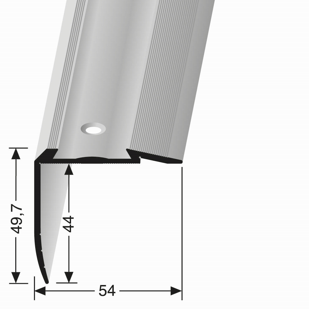 Treppenkantenprofil 49.7 x 54 x 2500 mm Aluminium Winkelprofil Geriffelt Versenkt Gebohrt Küberit