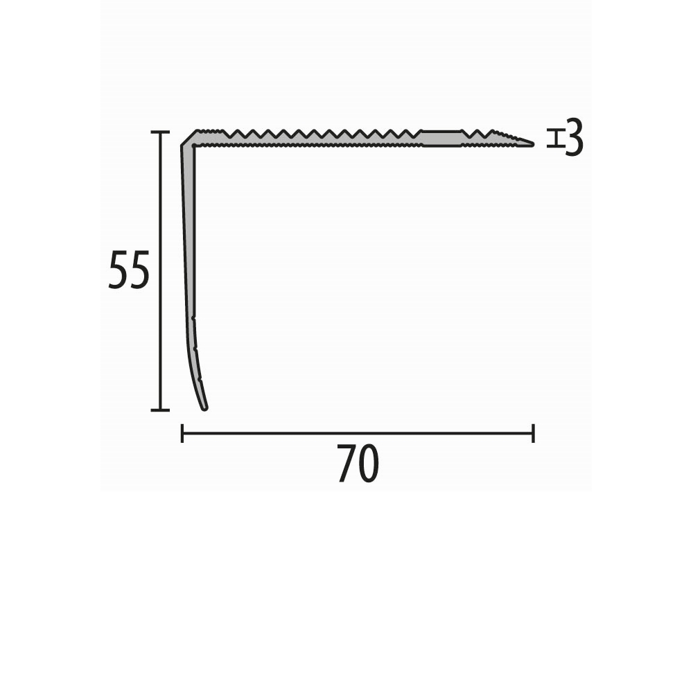 Treppenprofil 55 x 70 mm Aluminium Treppenkantenprofil Winkelprofil Geriffelt versch. Längen Küberit