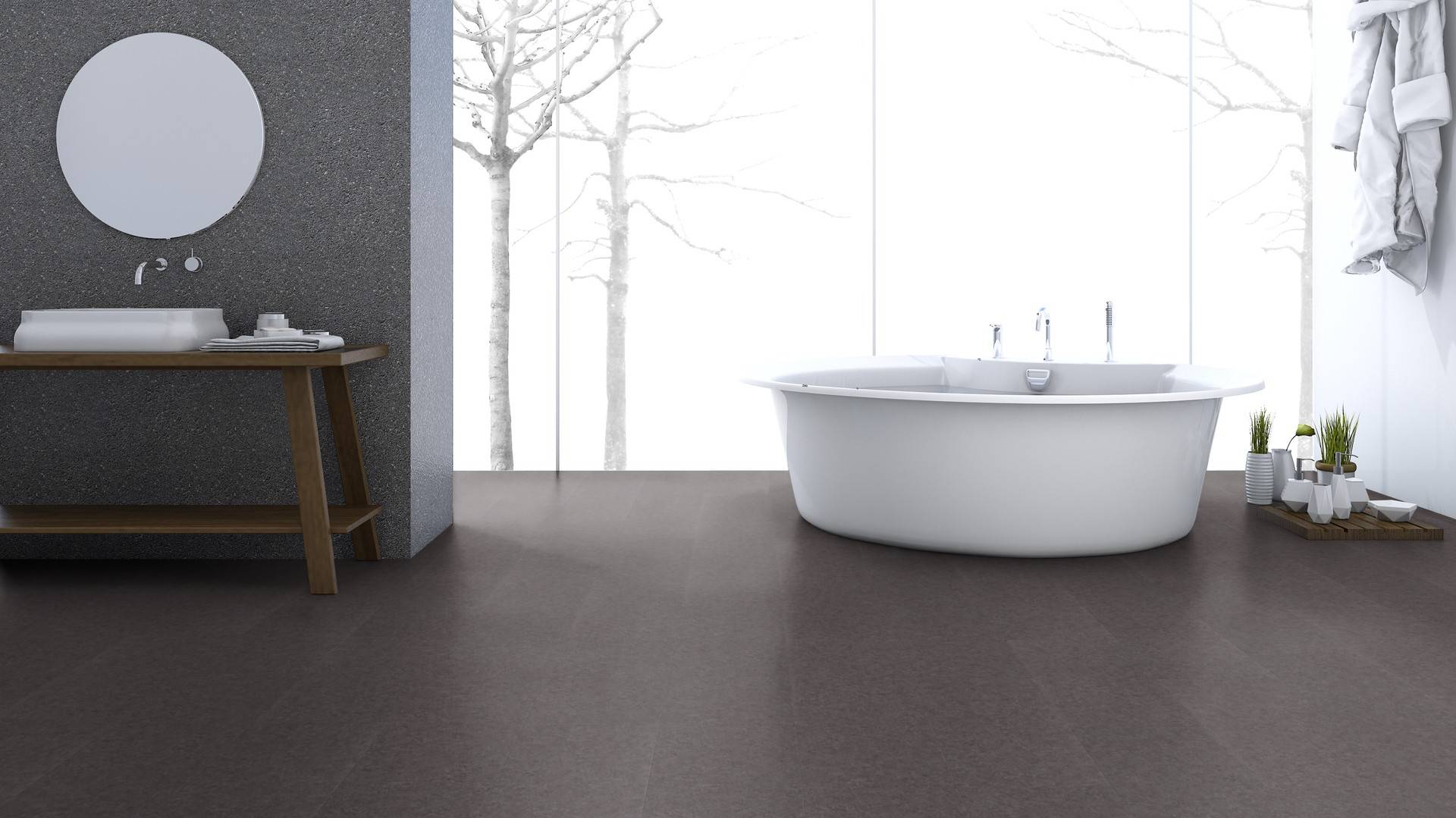 Der Bodenbelag inAnthrazit Loft überzeugt durch seine perfekte Imitation natürlicher Holzböden. Die feine Maserung verleiht dem Boden eine authentische und hochwertige Ausstrahlung die an Böden aus Steinbödenerinnert. Dank der vielseitigen Farbgebung passt er zu jedem Einrichtungsstil und schafft eine harmonische Atmosphäre in deinem Zuhause.