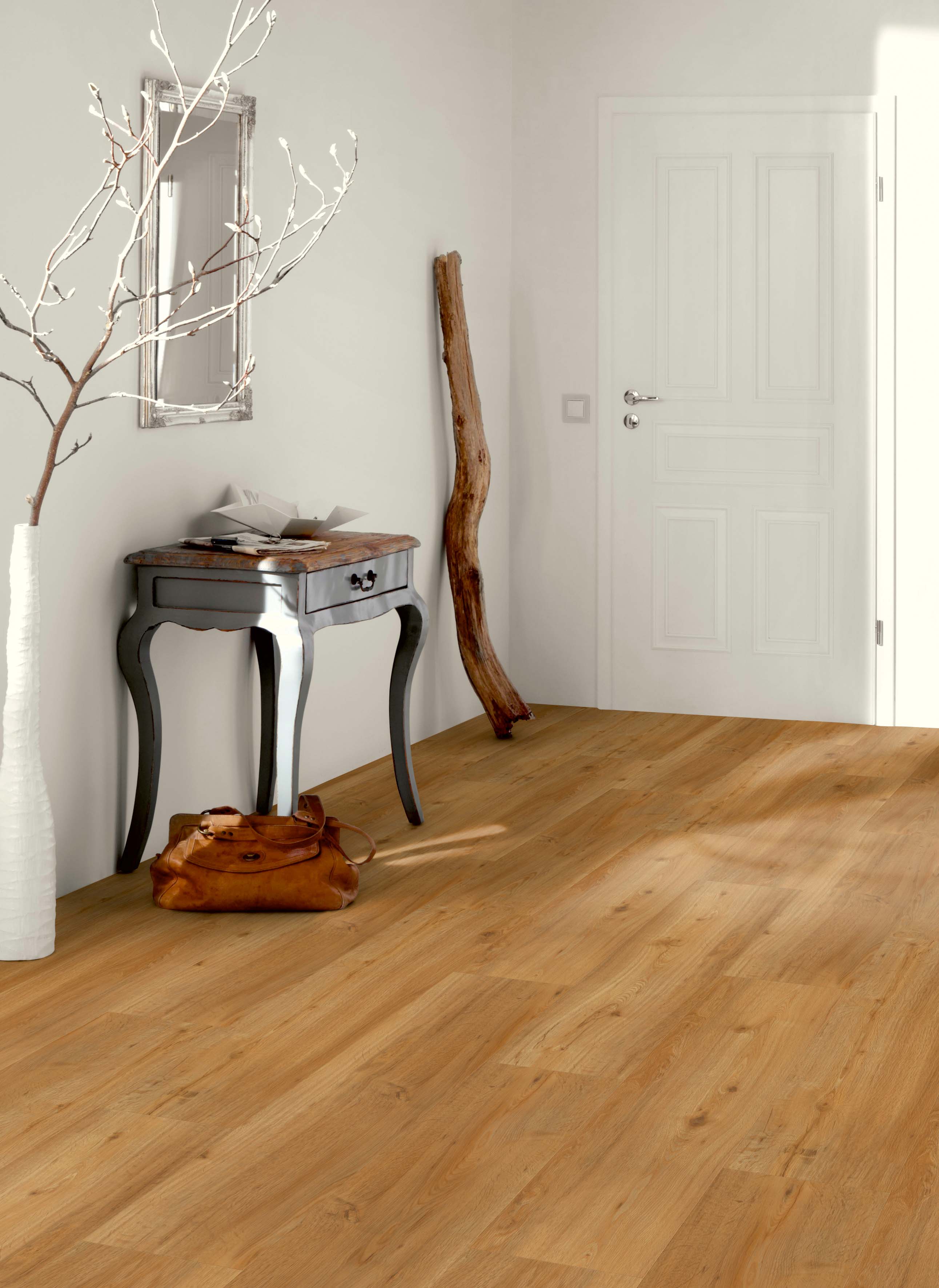 Der Bodenbelag inRich Valley Oak überzeugt durch seine perfekte Imitation natürlicher Holzböden. Die feine Maserung verleiht dem Boden eine authentische und hochwertige Ausstrahlung die an Böden aus Eicheerinnert. Dank der vielseitigen Farbgebung passt er zu jedem Einrichtungsstil und schafft eine harmonische Atmosphäre in deinem Zuhause.