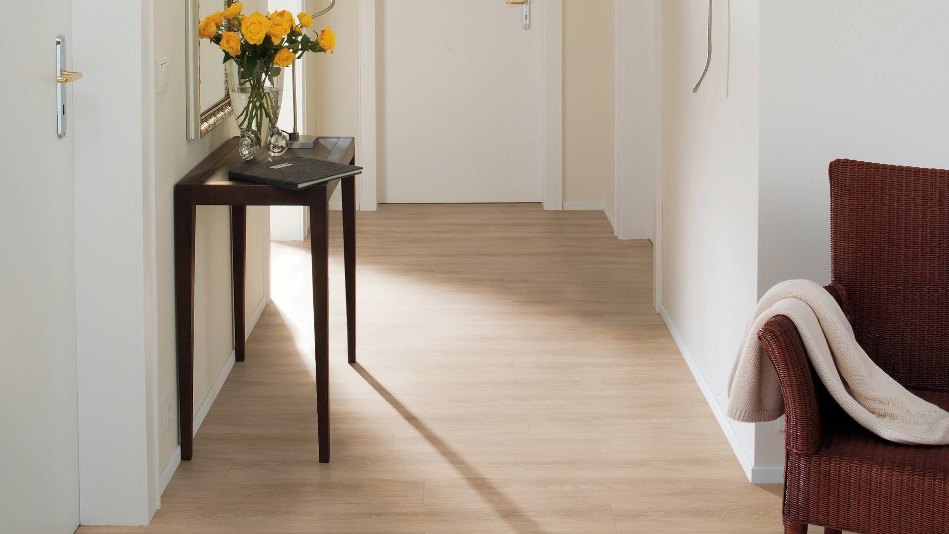 Der Bodenbelag inBlond Rustic überzeugt durch seine perfekte Imitation natürlicher Holzböden. Die feine Maserung verleiht dem Boden eine authentische und hochwertige Ausstrahlung die an Böden aus Echtholzerinnert. Dank der vielseitigen Farbgebung passt er zu jedem Einrichtungsstil und schafft eine harmonische Atmosphäre in deinem Zuhause.