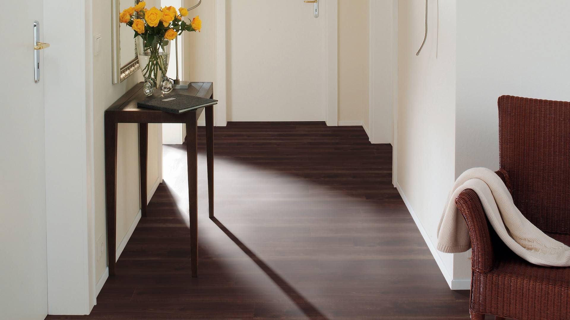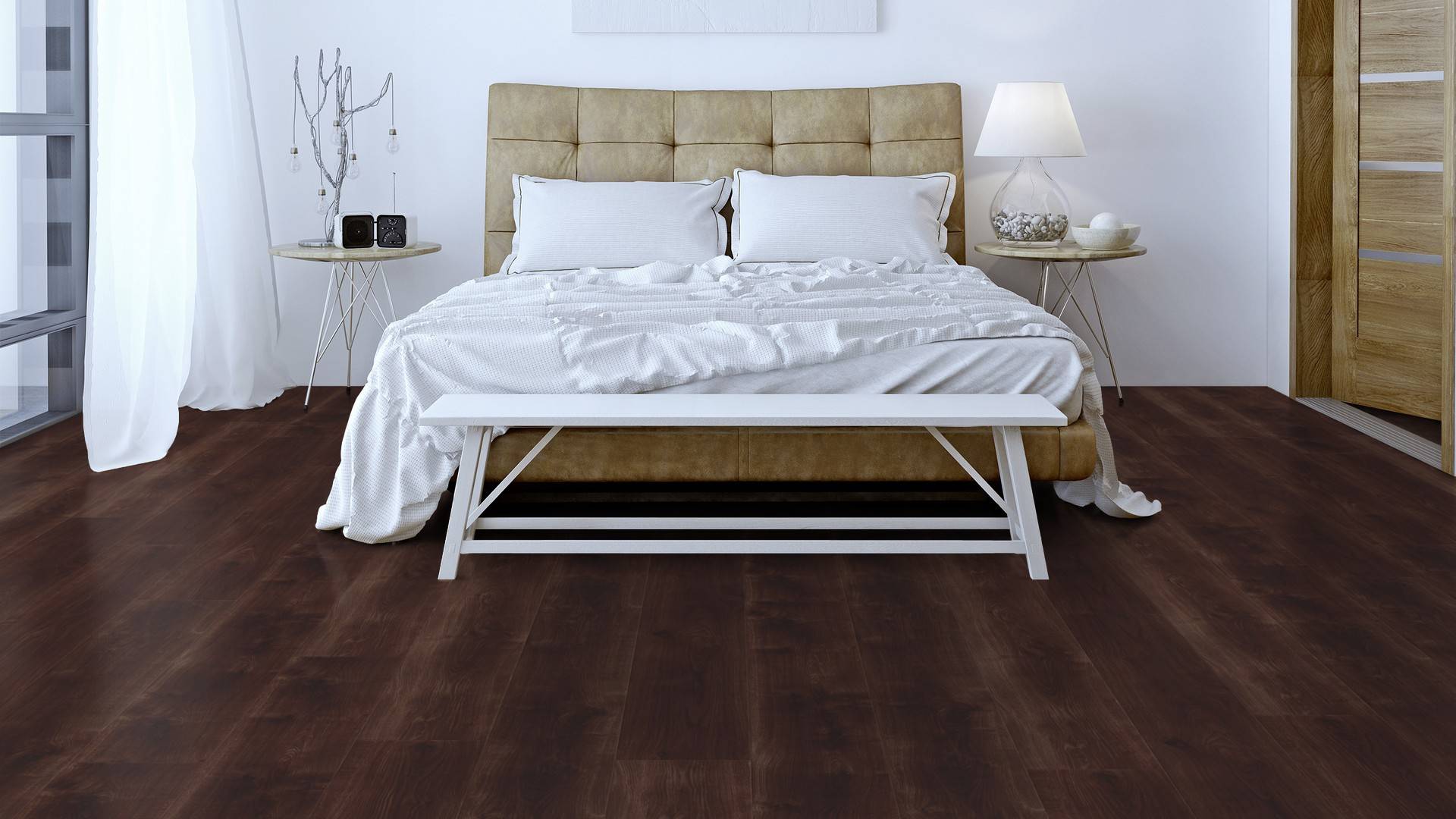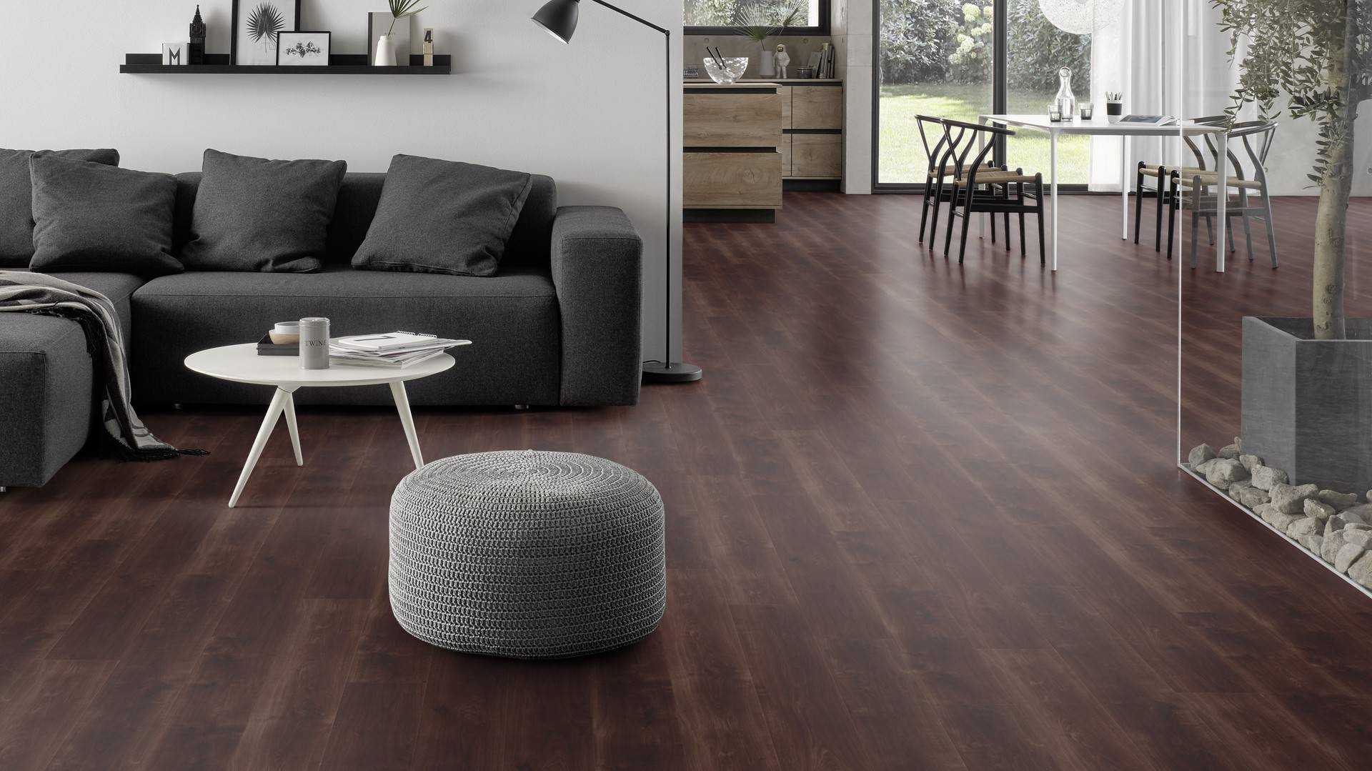 Der Bodenbelag inWalnut überzeugt durch seine perfekte Imitation natürlicher Holzböden. Die feine Maserung verleiht dem Boden eine authentische und hochwertige Ausstrahlung die an Böden aus Walnusserinnert. Dank der vielseitigen Farbgebung passt er zu jedem Einrichtungsstil und schafft eine harmonische Atmosphäre in deinem Zuhause.