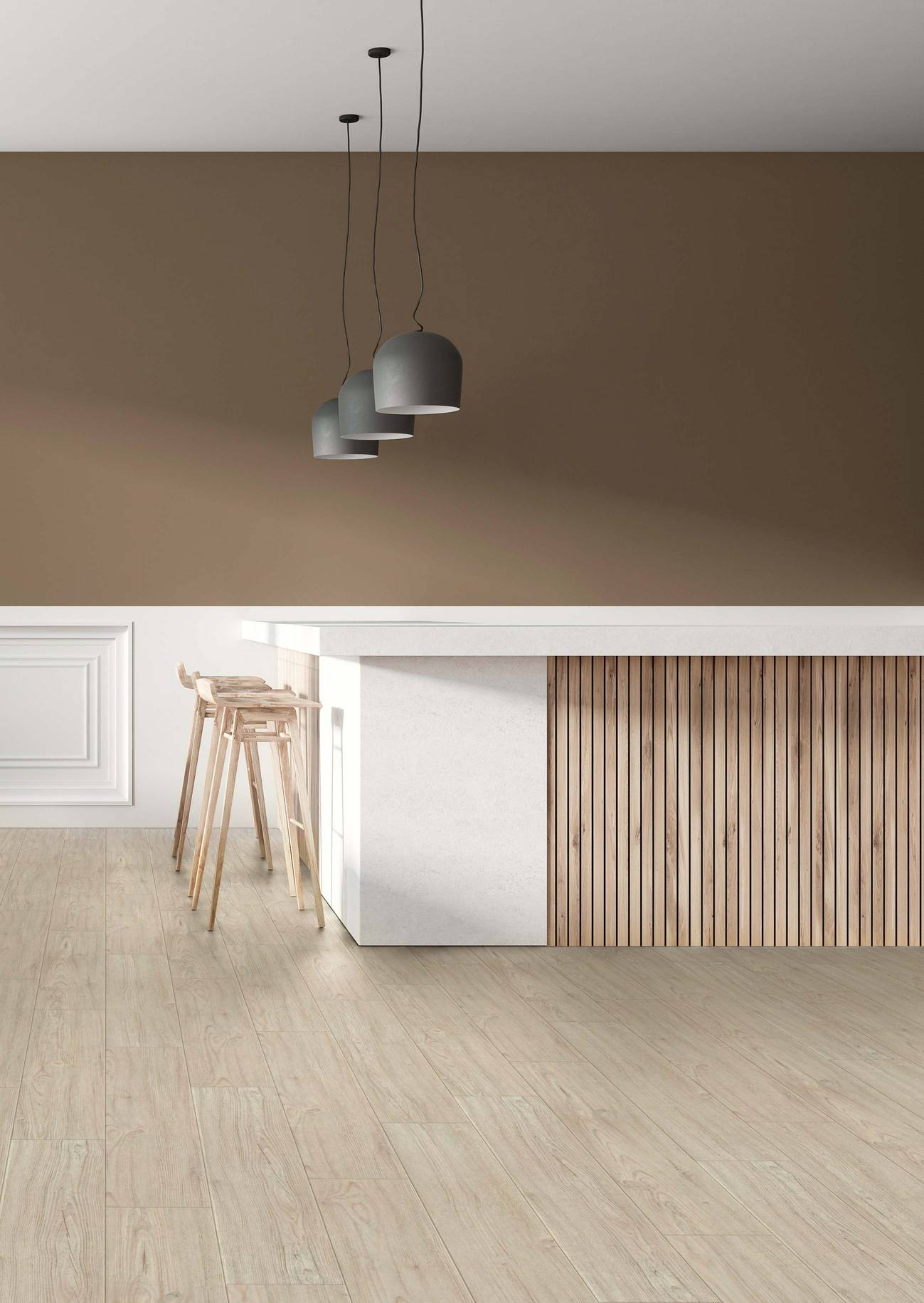 Der Bodenbelag inWhite Rustic Pine überzeugt durch seine perfekte Imitation natürlicher Holzböden. Die feine Maserung verleiht dem Boden eine authentische und hochwertige Ausstrahlung die an Böden aus Kiefererinnert. Dank der vielseitigen Farbgebung passt er zu jedem Einrichtungsstil und schafft eine harmonische Atmosphäre in deinem Zuhause.