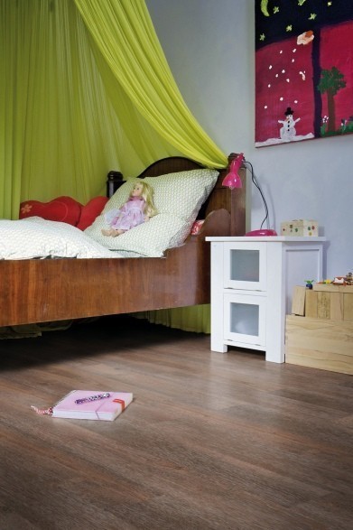 Jeder Designboden der floors@home Kollektion basiert auf einer Kunststoffrückenschicht, gefolgt von einer stabilisierenden Trägerschicht, auf der das beeindruckende Dekor ruht. An der Spitze des Designbodenbelags befindet sich die transparente Nutzschicht, bestehend aus PVC und zusätzlich mit einer Oberflächenvergütung aus Polyurethan (PU) versehen.