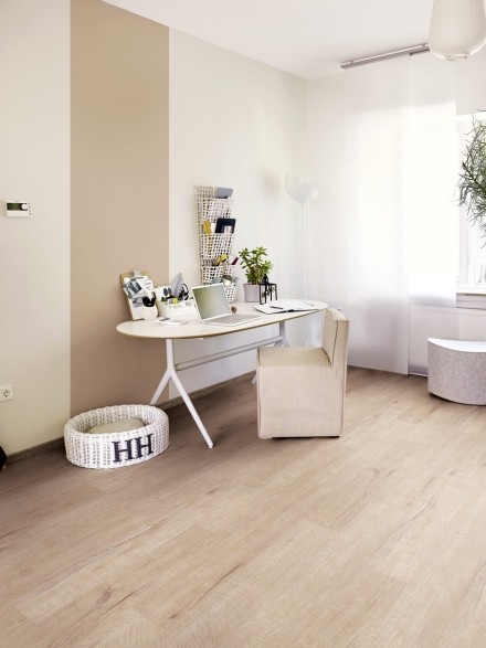 Jeder Designboden der floors@home Kollektion basiert auf einer Kunststoffrückenschicht, gefolgt von einer stabilisierenden Trägerschicht, auf der das beeindruckende Dekor ruht. An der Spitze des Designbodenbelags befindet sich die transparente Nutzschicht, bestehend aus PVC und zusätzlich mit einer Oberflächenvergütung aus Polyurethan (PU) versehen.