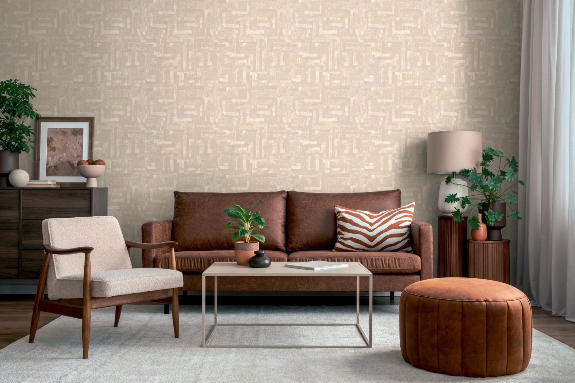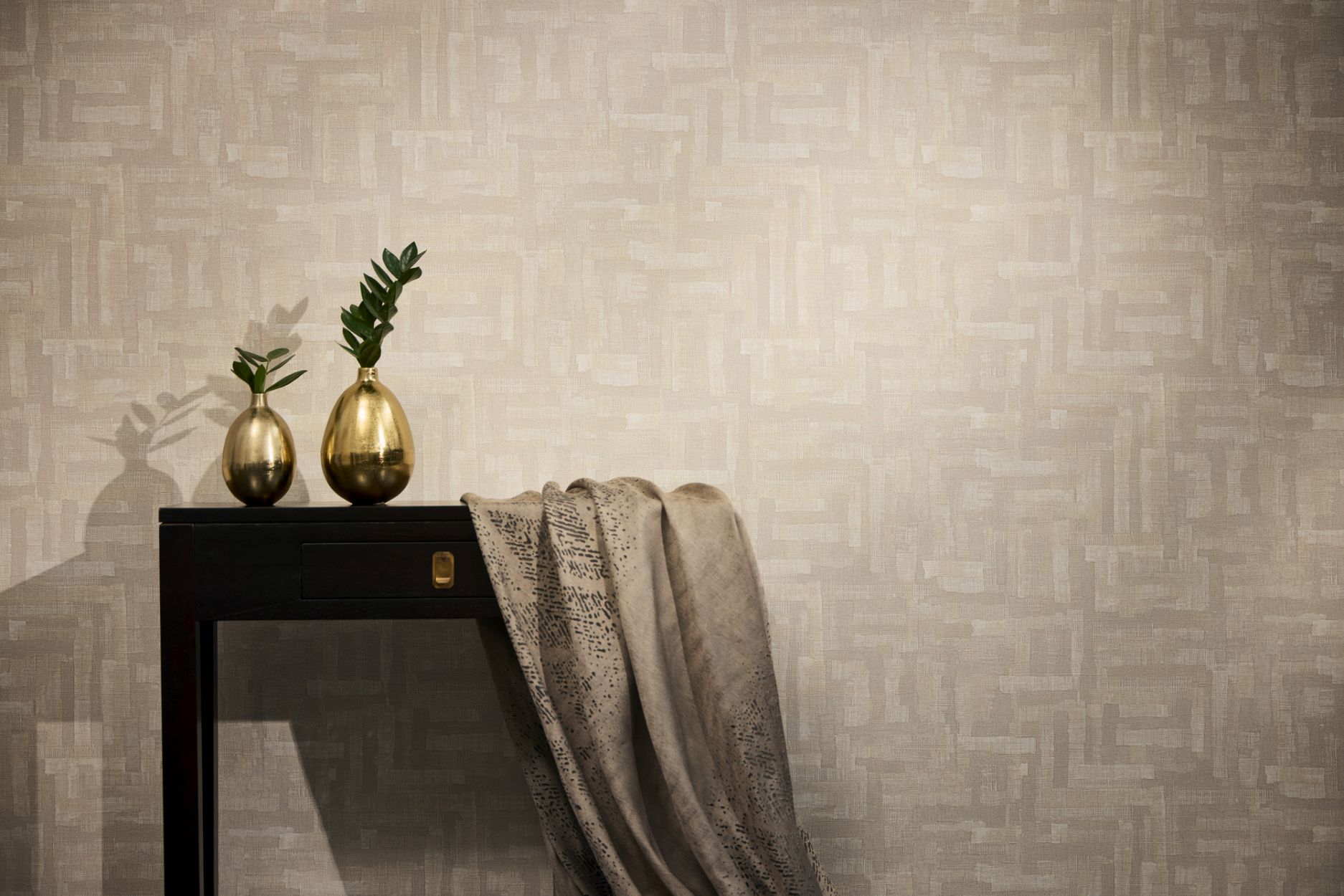 FARBE: Die Vliestapete überzeugt mit geschmackvollen Akzenten in einem harmonischen Beige