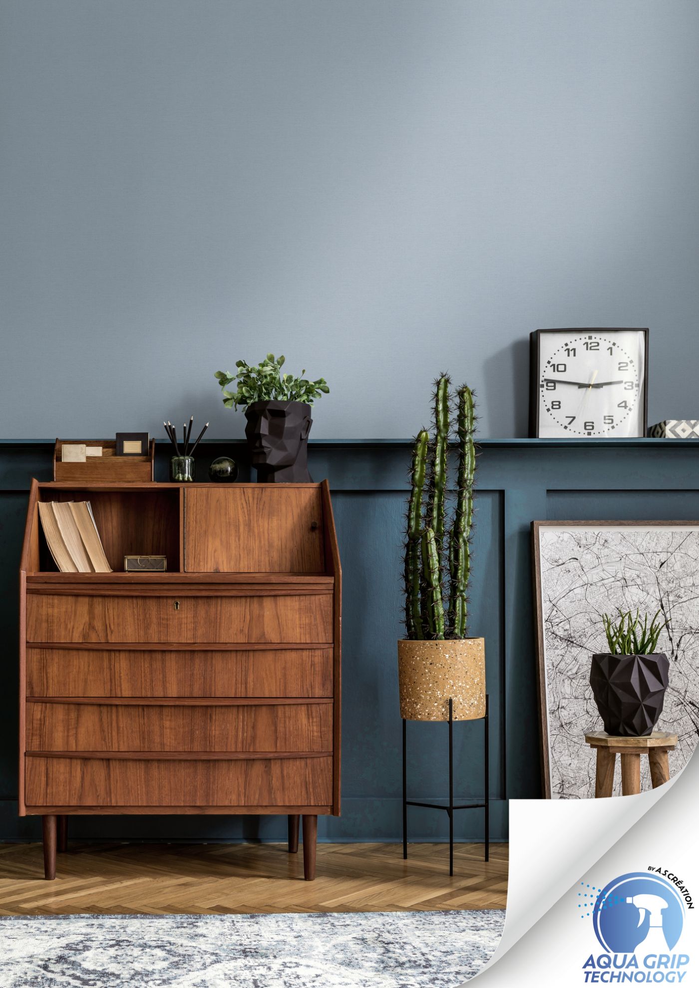 ANBRINGUNG: Innovatives Tapezieren - Sprühe Wasser auf die Kleisterseite und bringe sie Bahn für Bahn an die Wand, mit der neuen "Aqua Grip Technology".