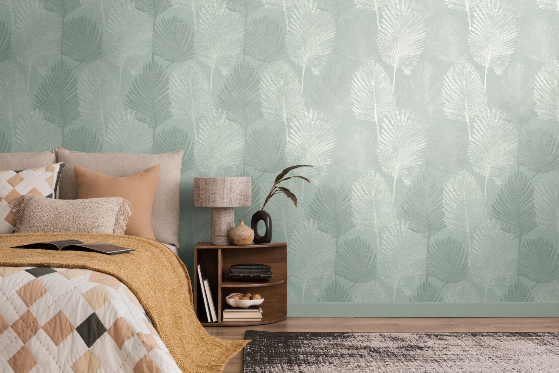 FARBE: Die Vliestapete überzeugt mit geschmackvollen Akzenten in einem harmonischen Grün