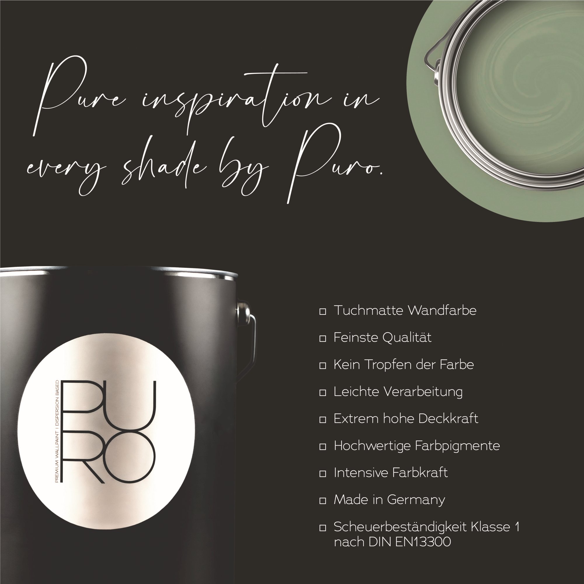 Wandfarbe Grün | PURO Misty Green | Exklusive Innendispersion Hohe Farbintensität