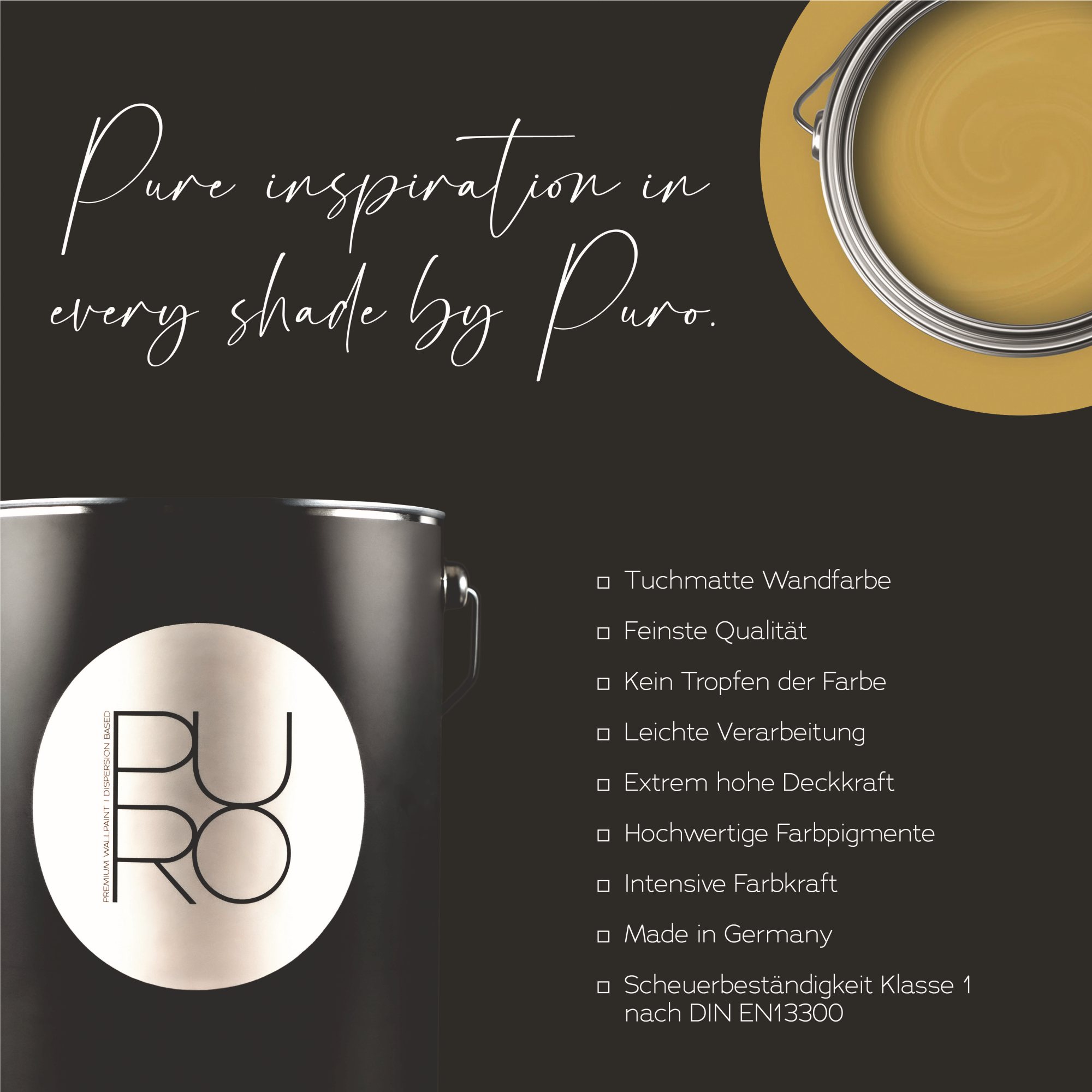 Entdecke die faszinierende Welt von Puro - die Wandfarbe voller Eleganz und Luxus. Eine exklusive Farbreihe, die speziell entwickelt wurde um Deine Wände mit einem einzigartigen seidenmatten Glanz zu tauchen und gleichzeitig eine atemberaubende Atmosphäre zu schaffen. Dank der Verwendung hochwertiger Farbpigmente werden Deine Wände glatt und strapazierfähig. Du erhältst ein schönes Finish für die perfekte Optik. Mit einer breiten Palette an sowohl trendigen als auch zeitlosen Farbtönen findest Du bei PURO den idealen Farbton, der zu Dir und Deinem Zuhause passt.