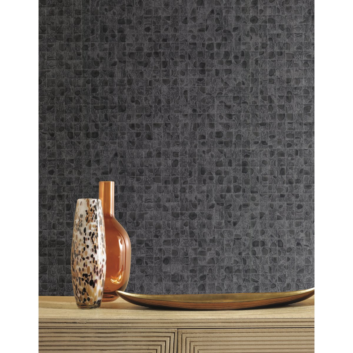 Das Besondere an dieser Kollektion sind vor allem die Tapeten im Pattern Leather Luxe Design. Das Pattern Leather Luxe ist ein geometrisches Raster, das mit transparentem, strukturiertem Lack überdruckt ist, um den Effekt von Farbe unter klaren, schimmernden Gewässern zu erzielen.